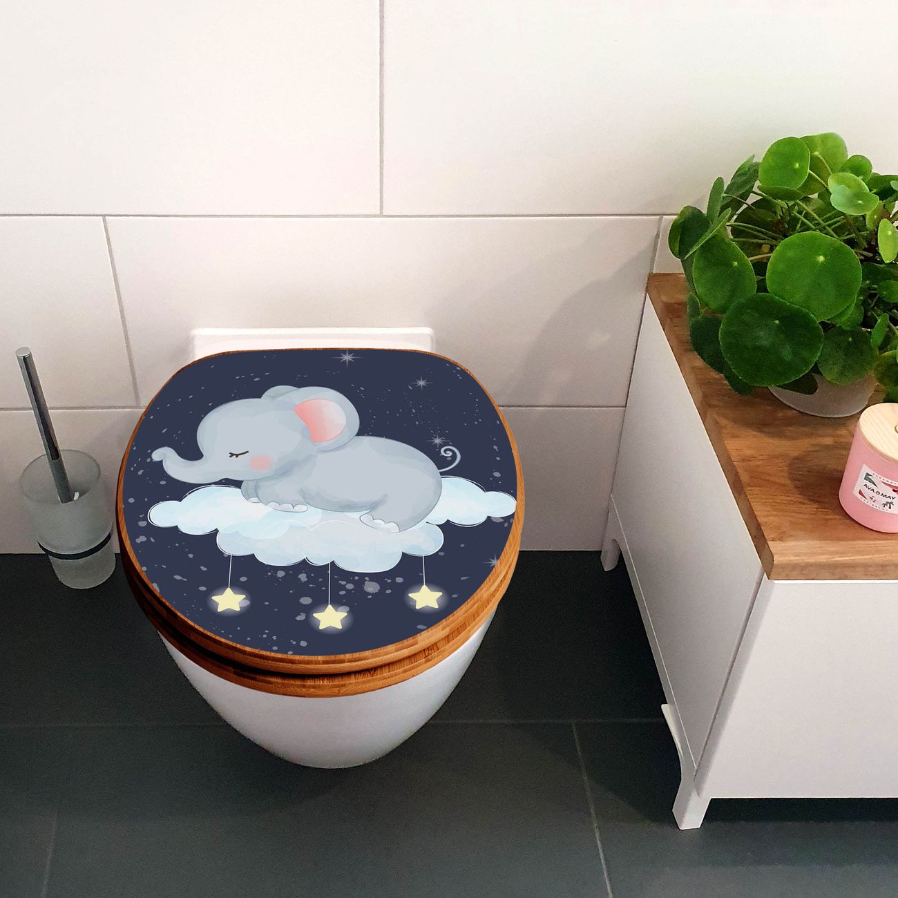 Design WC-Sitz Bambus Absenkautomatik Motiv schlafender Elefant