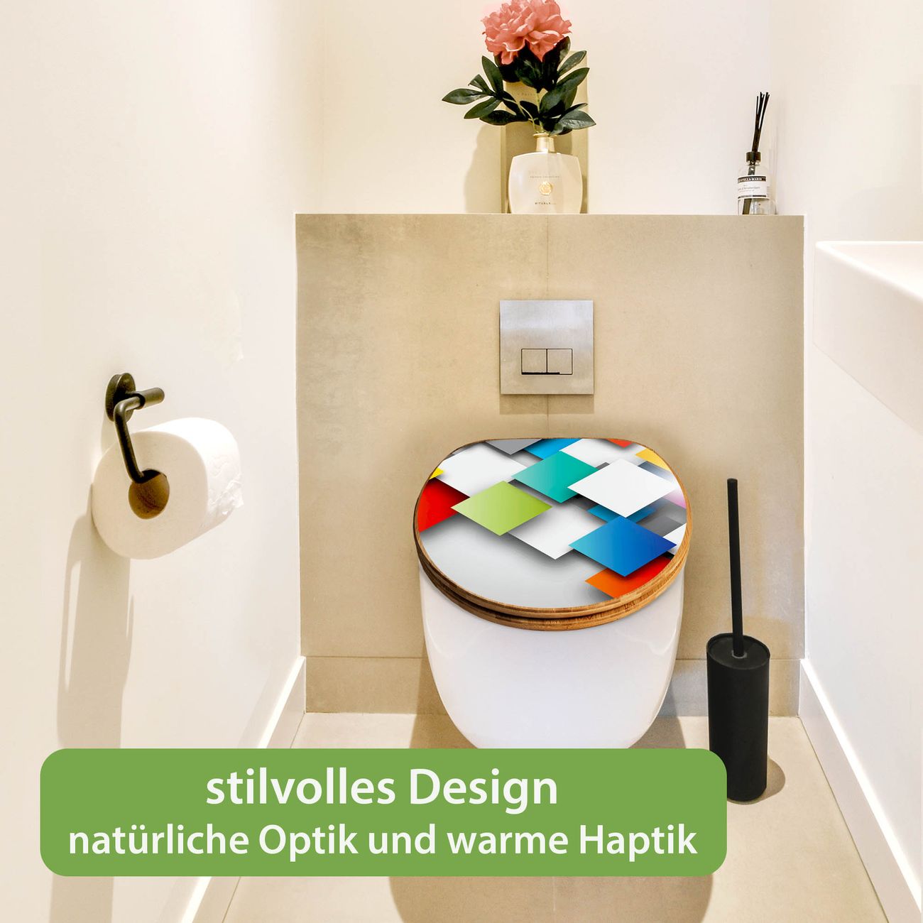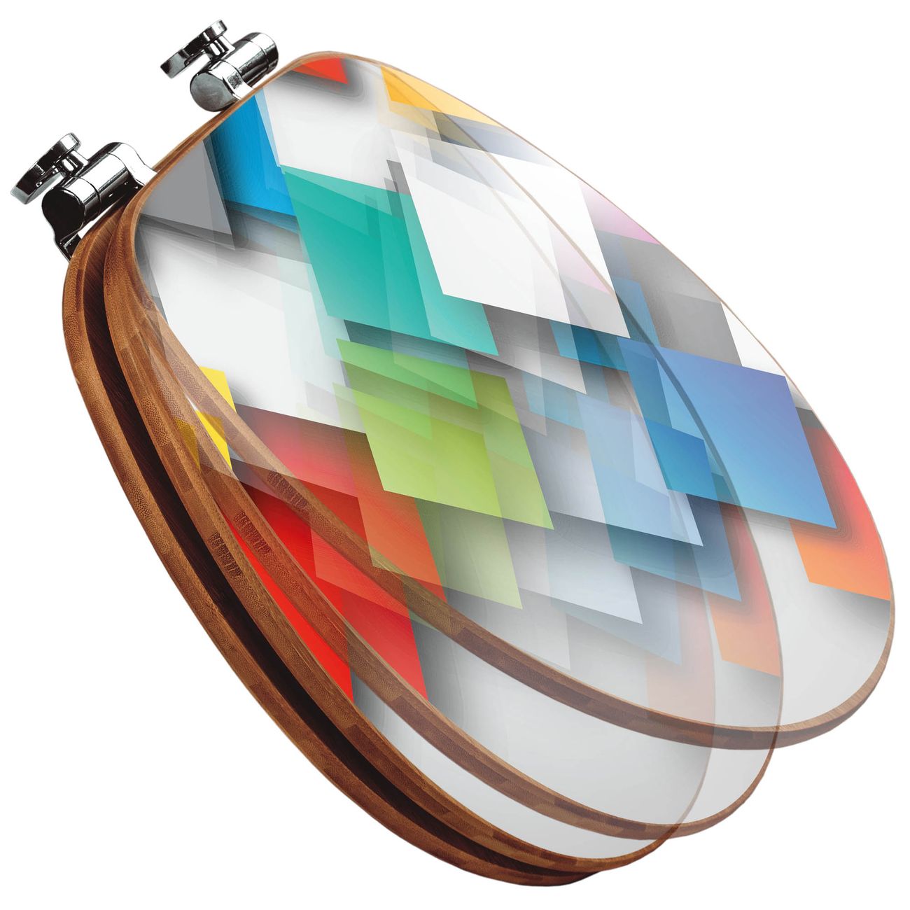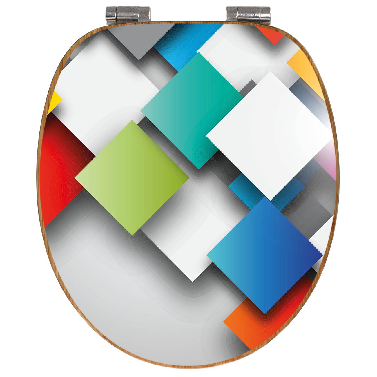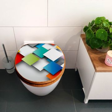Design WC-Sitz Bambus Absenkautomatik Motiv Schwebende Quadrate