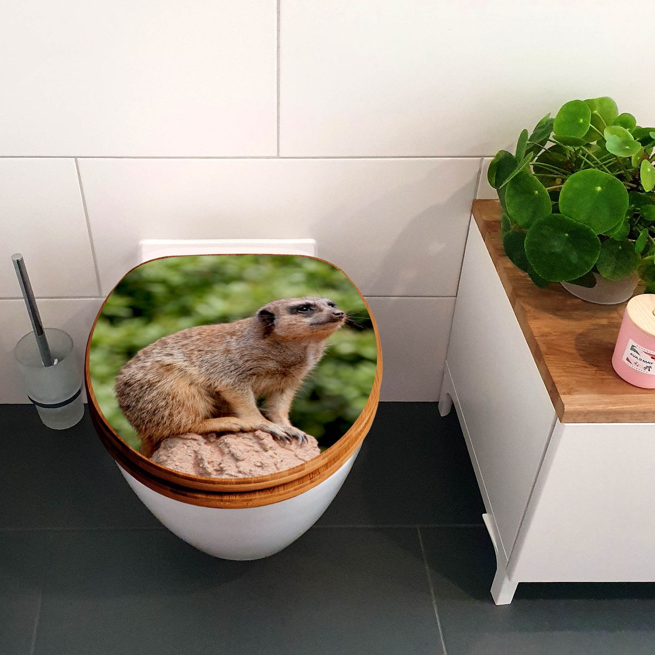 Design WC-Sitz Bambus Absenkautomatik Motiv Sitzendes Erdmännchen
