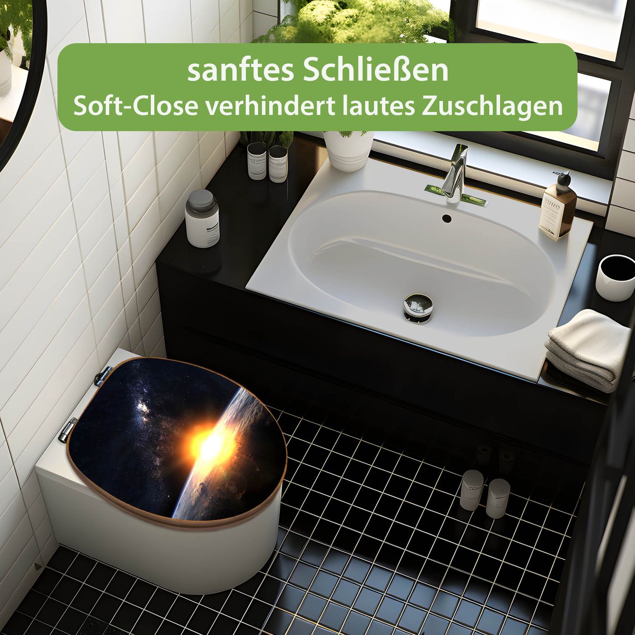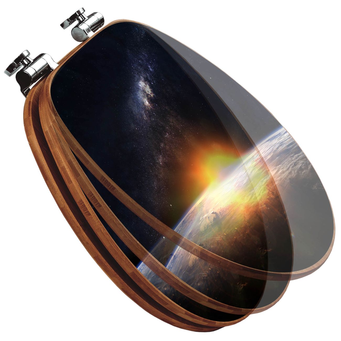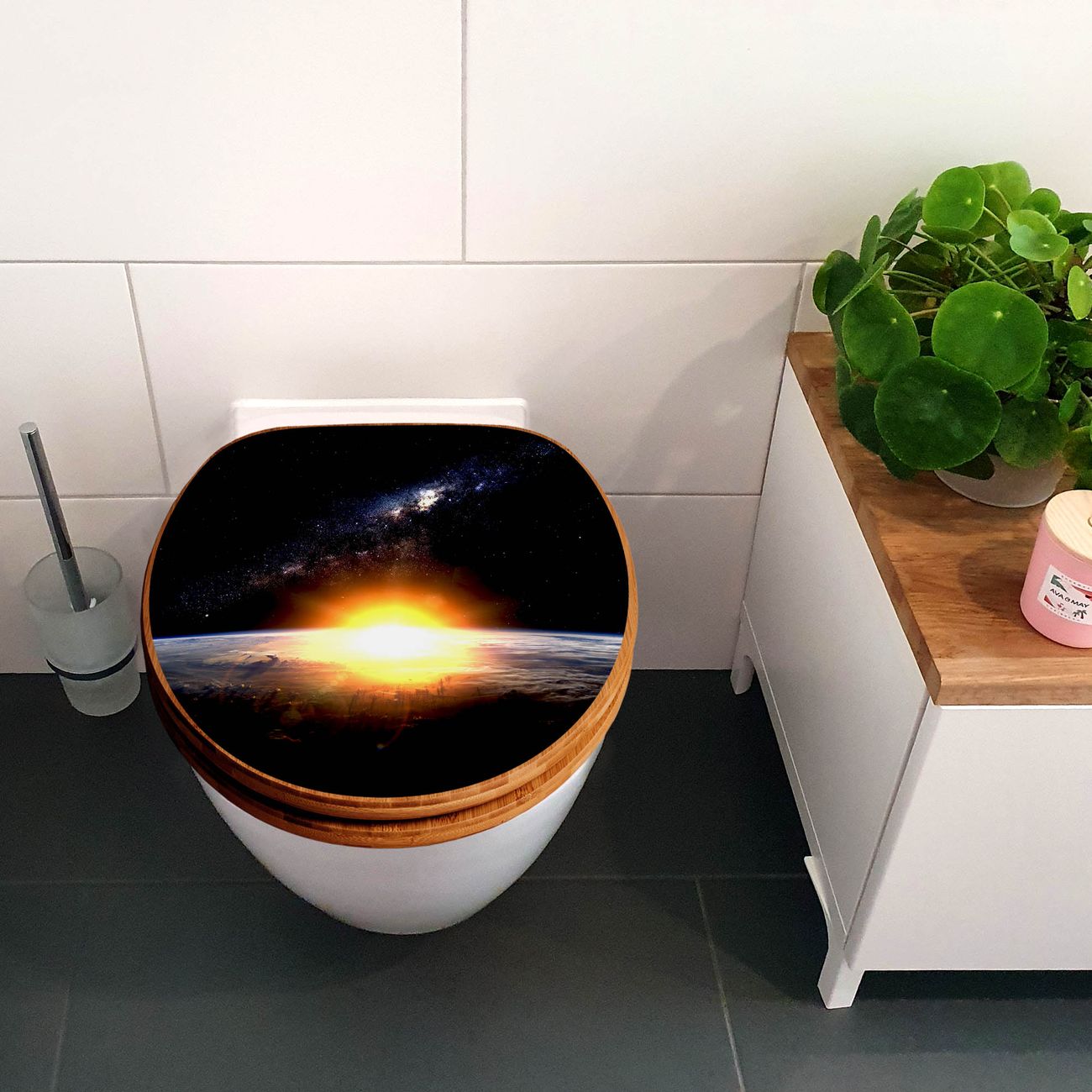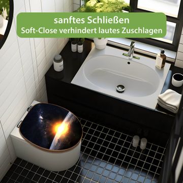 Design WC-Sitz Bambus Absenkautomatik Motiv Sonne im Weltall