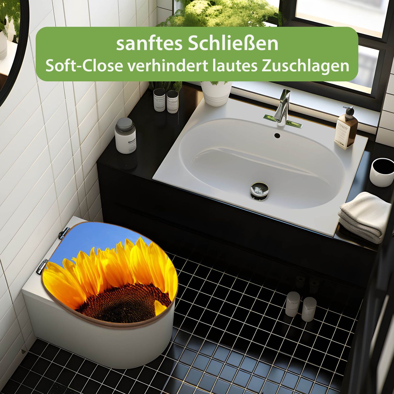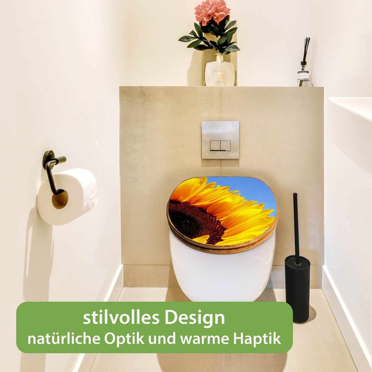 Design WC-Sitz Bambus Absenkautomatik Motiv Sonnenblume