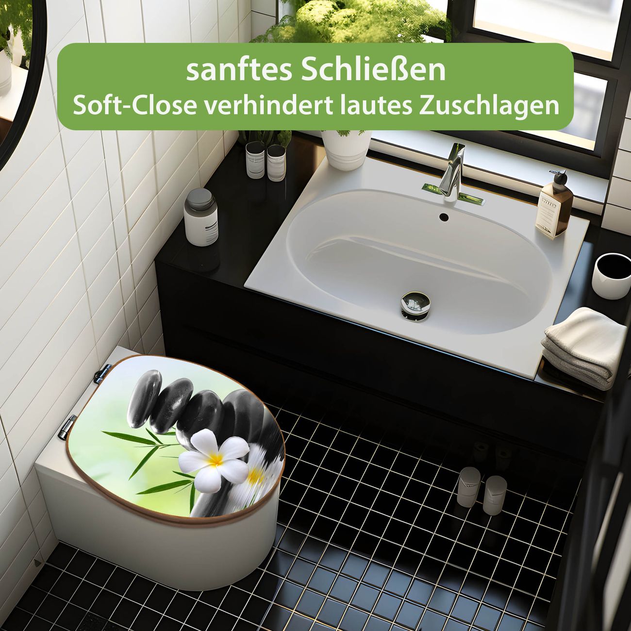 Design WC-Sitz Bambus Absenkautomatik Motiv Steine & Relax 6