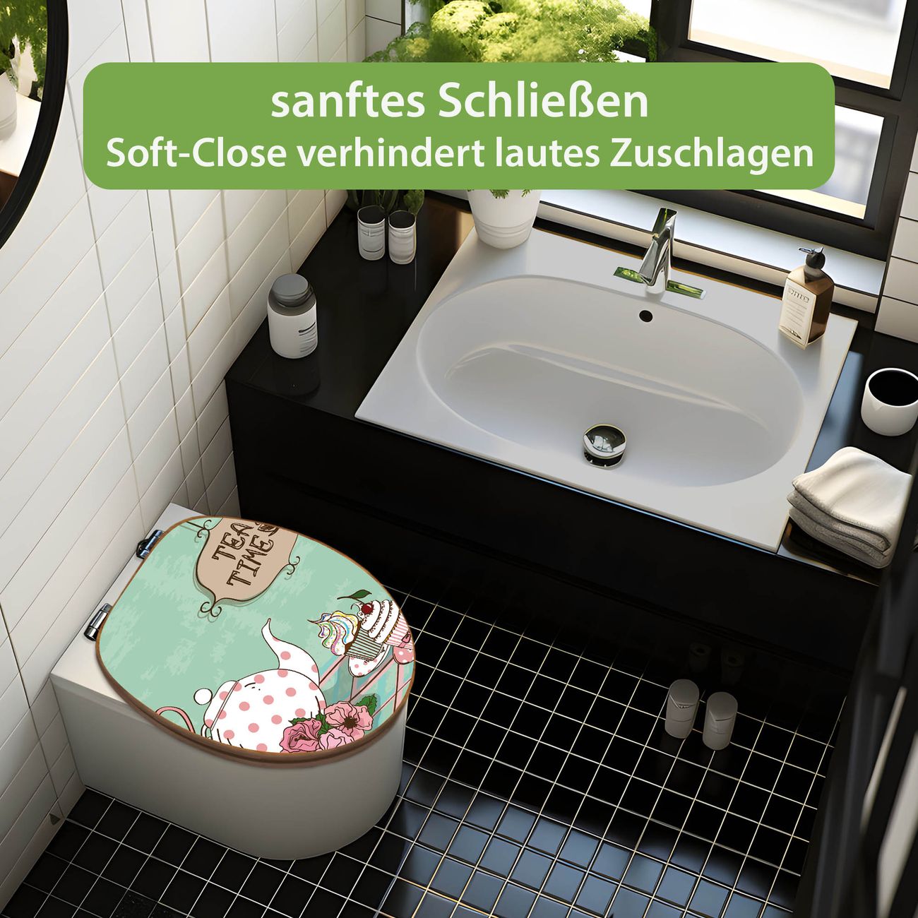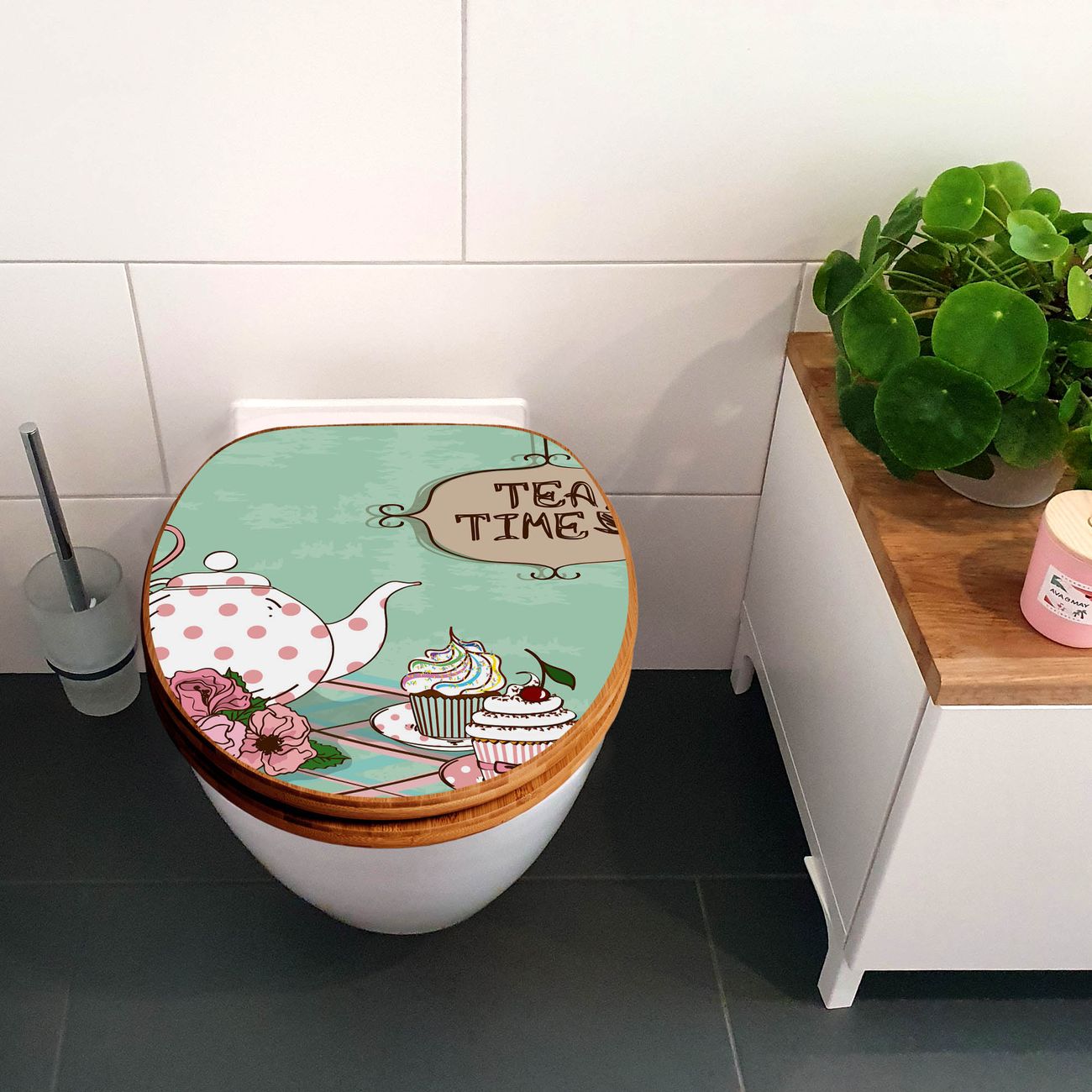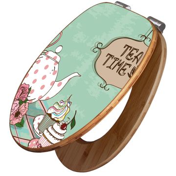Design WC-Sitz Bambus Absenkautomatik Motiv Tea Time