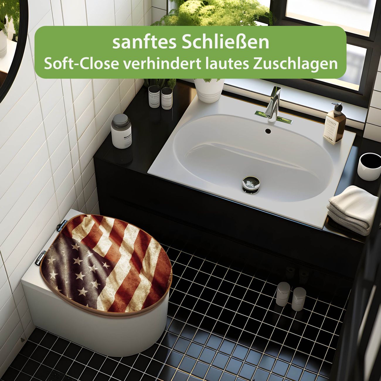 Design WC-Sitz Bambus Absenkautomatik Motiv United States