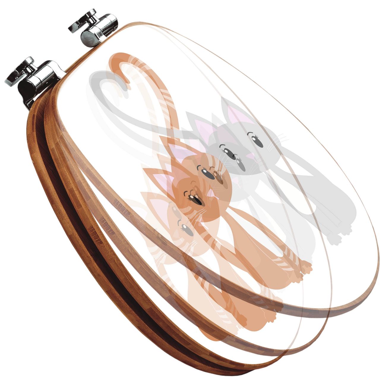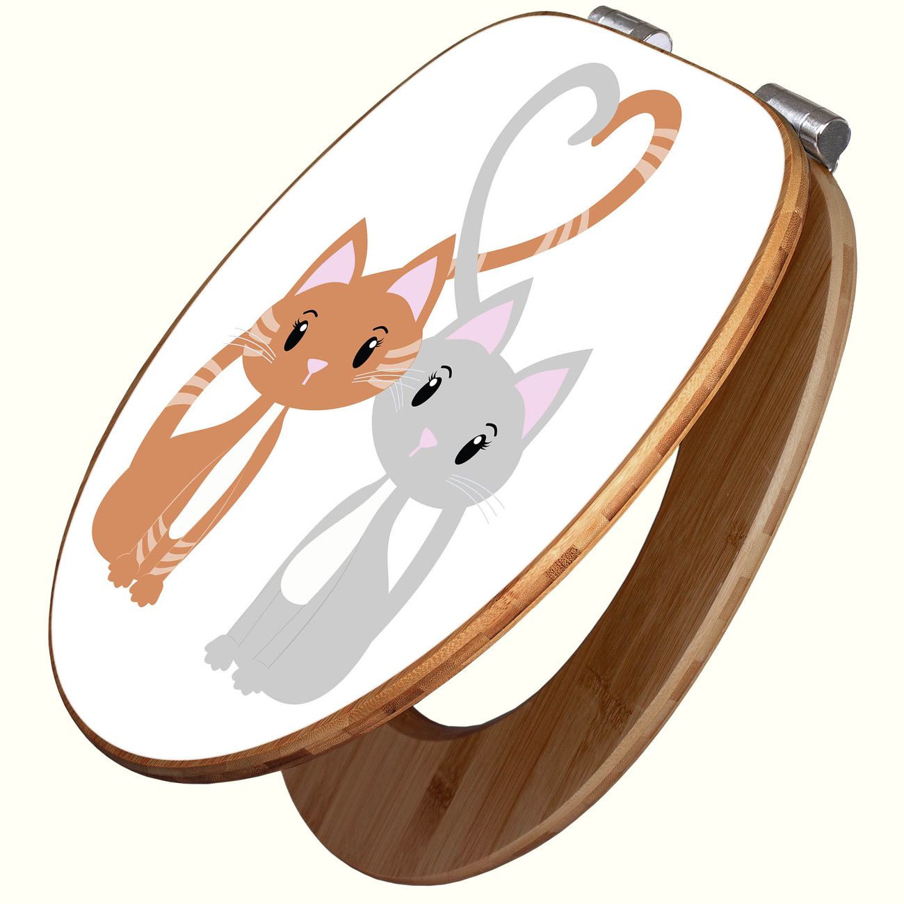 Design WC-Sitz Bambus Absenkautomatik Motiv Verliebte Katzen 3