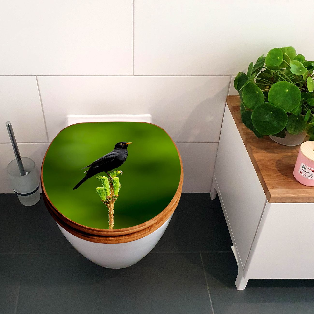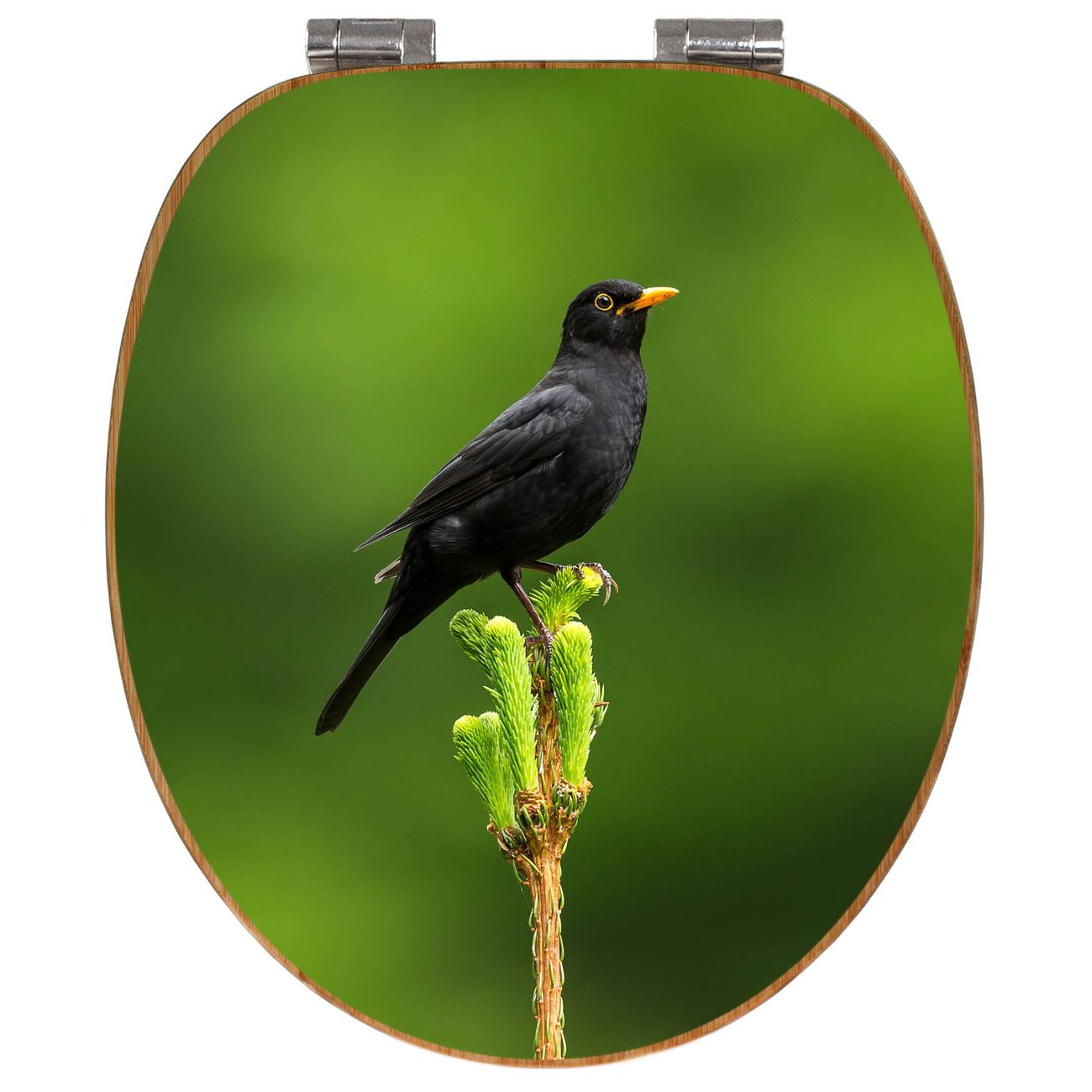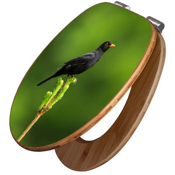 Design WC-Sitz Bambus Absenkautomatik Motiv Vogel auf Tannenzweig