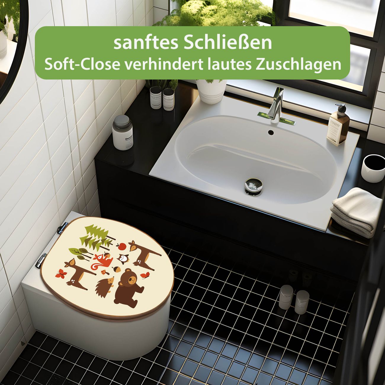 Design WC-Sitz Bambus Absenkautomatik Motiv Waldfreunde