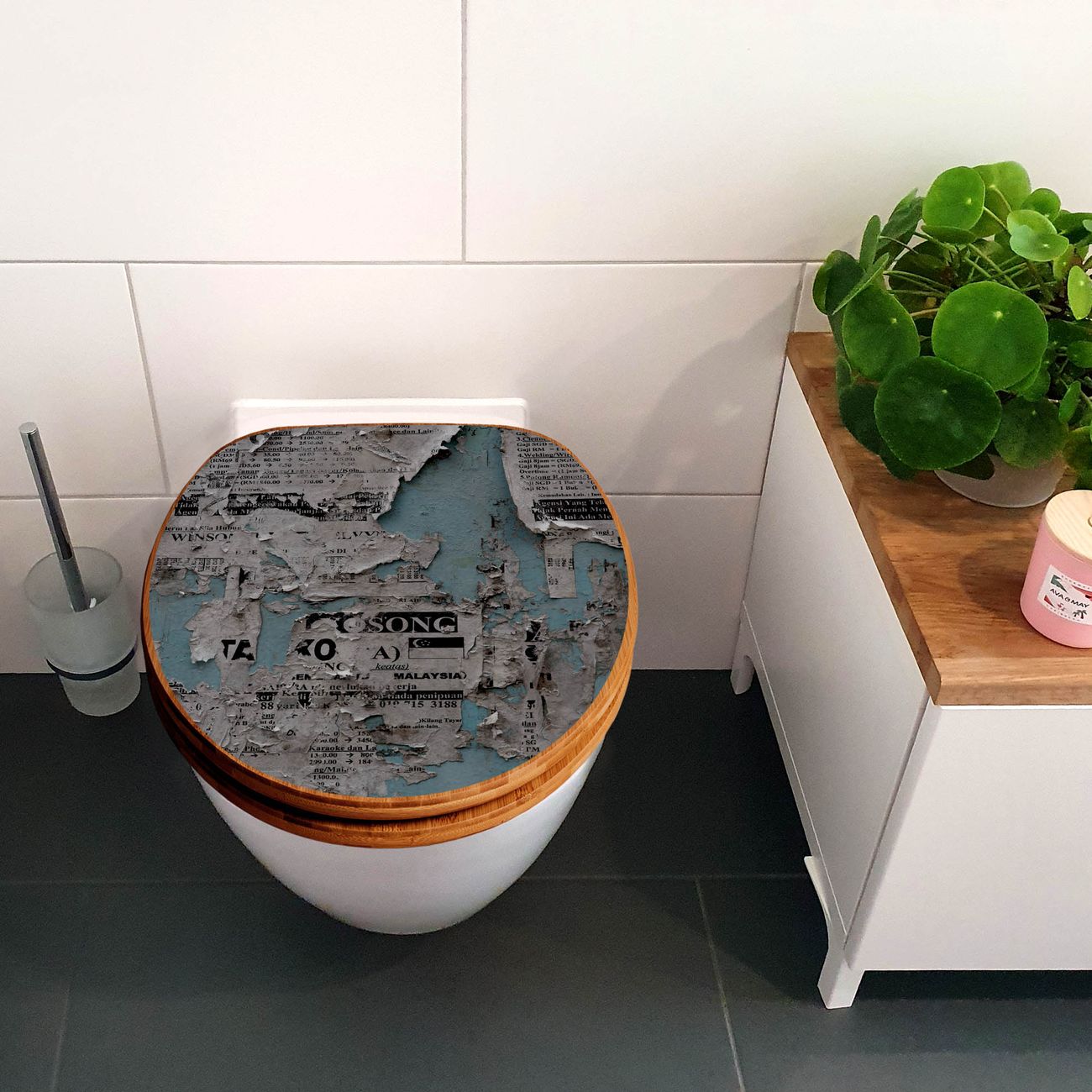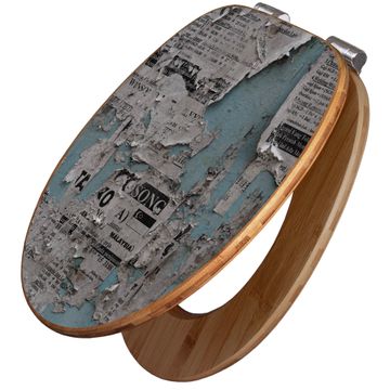 Design WC-Sitz Bambus Absenkautomatik Motiv Wand mit Zeitungen