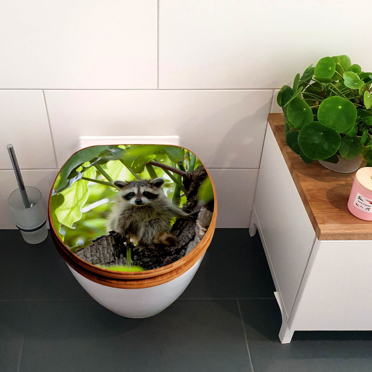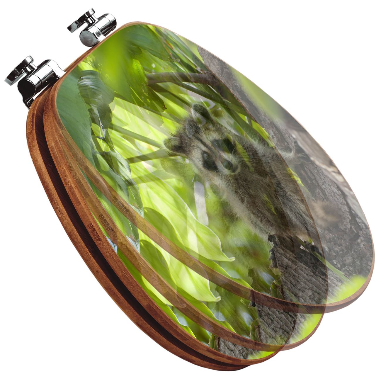 Design WC-Sitz Bambus Absenkautomatik Motiv Waschbär