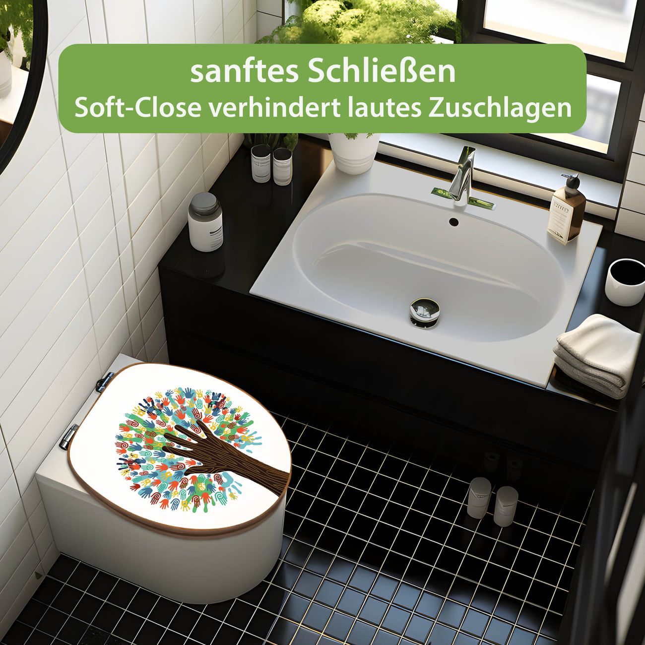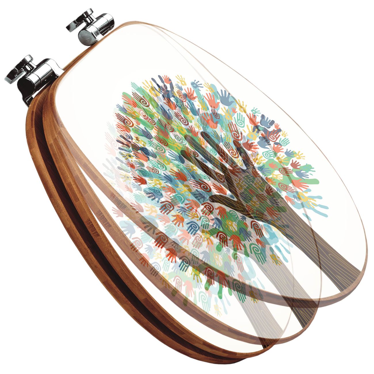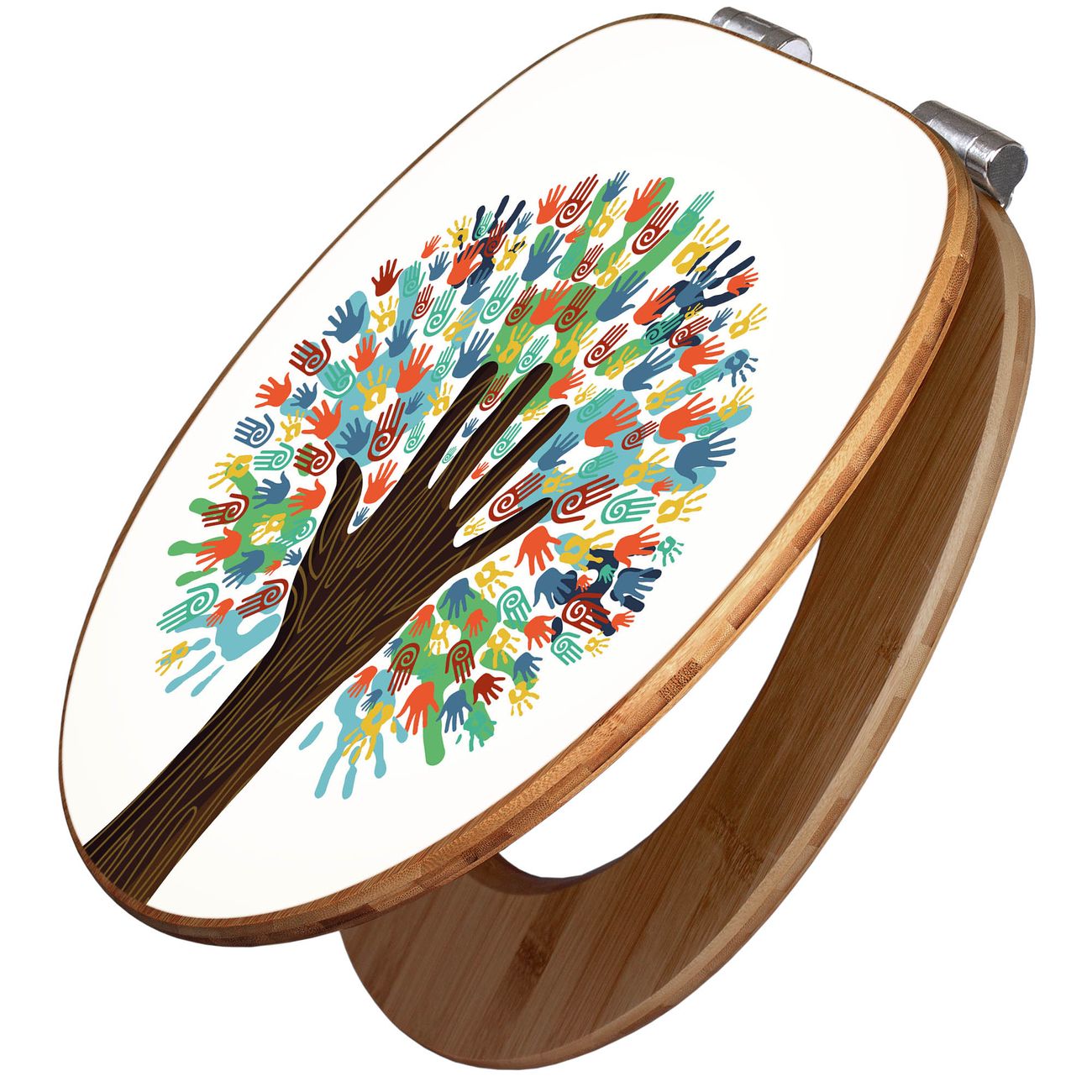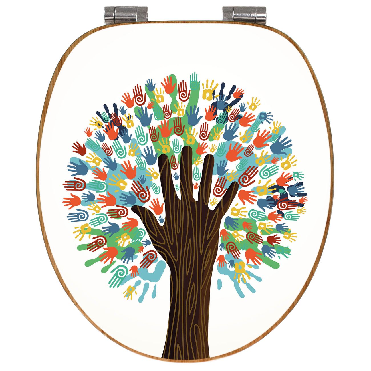 Mit dem banjado Toilettensitz in Bambus verbinden Sie Design und Funktionalität. Sie erhalten den WC-Sitz mit bewährter Holz Qualität und Universal Scharnieren. Das Motiv Motiv We are the World besteht aus einer schutzlaminierten Motivfolie, die durch das Schutzlaminat zusätzlich vor Kratzern schützt. Durch diesen Motivdruck wird der WC-Sitz zu einem Blickfang in Ihrem Bad.