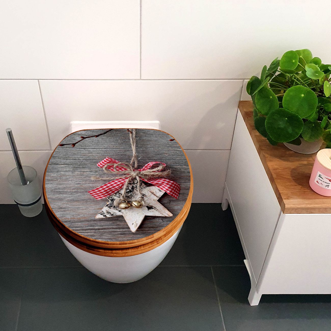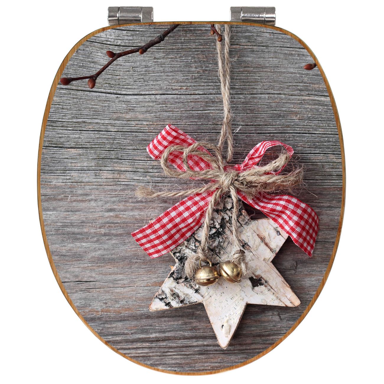 Mit dem banjado Toilettensitz in Bambus verbinden Sie Design und Funktionalität. Sie erhalten den WC-Sitz mit bewährter Holz Qualität und Universal Scharnieren. Das Motiv Motiv Weihnachtsstern besteht aus einer schutzlaminierten Motivfolie, die durch das Schutzlaminat zusätzlich vor Kratzern schützt. Durch diesen Motivdruck wird der WC-Sitz zu einem Blickfang in Ihrem Bad.