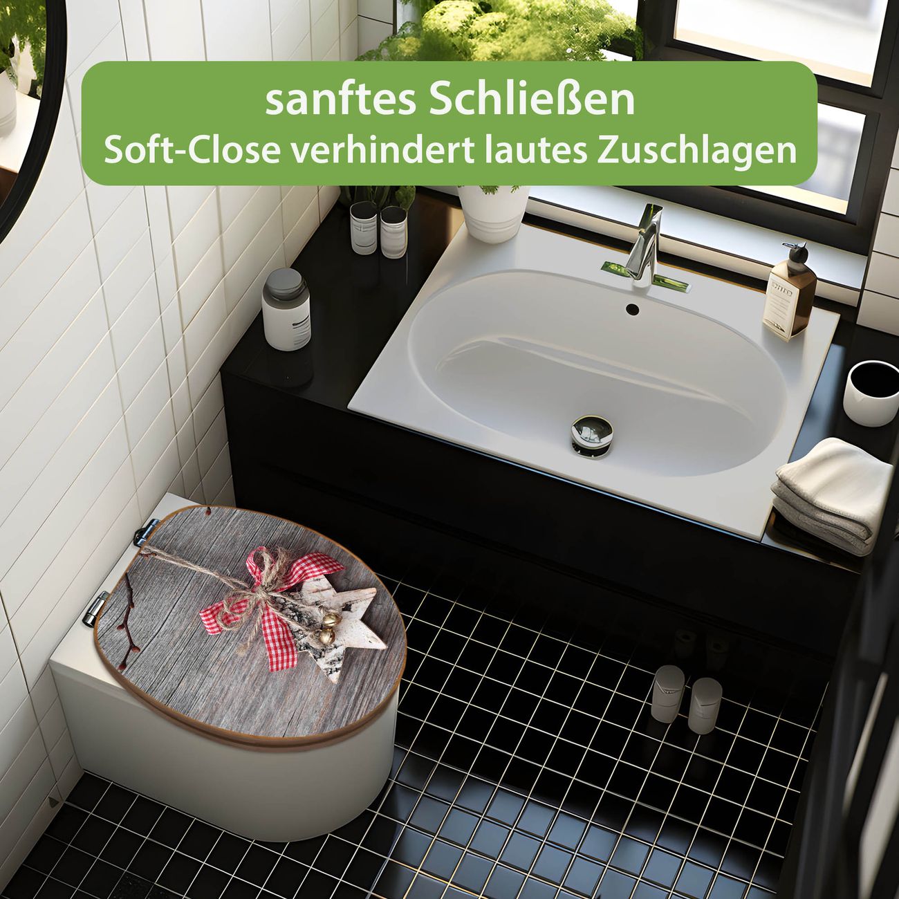 Design WC-Sitz Bambus Absenkautomatik Motiv Weihnachtsstern