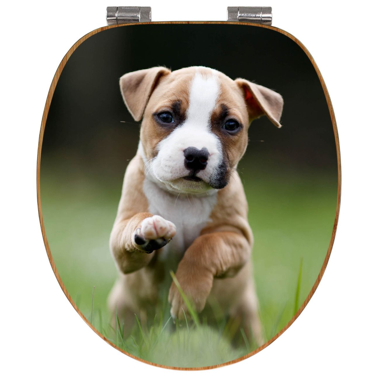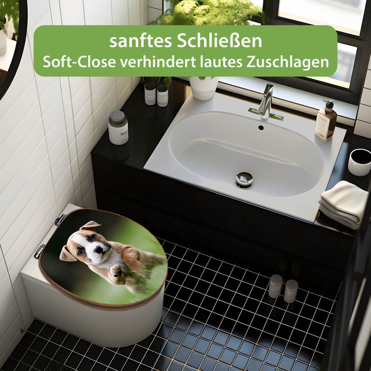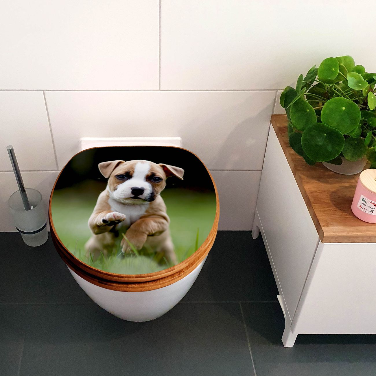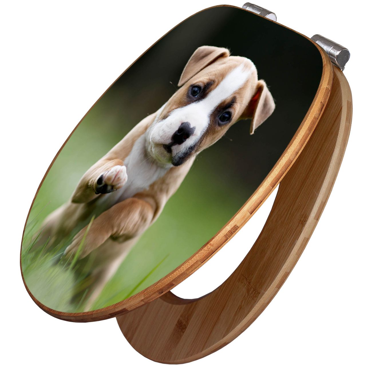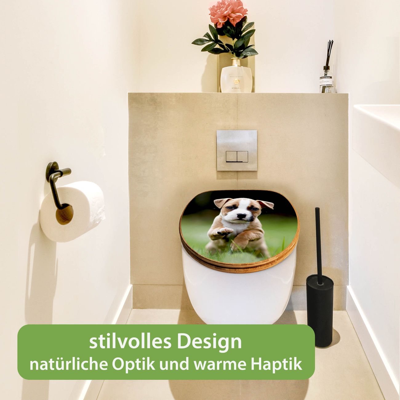 Design WC-Sitz Bambus Absenkautomatik Motiv Welpe im Gras