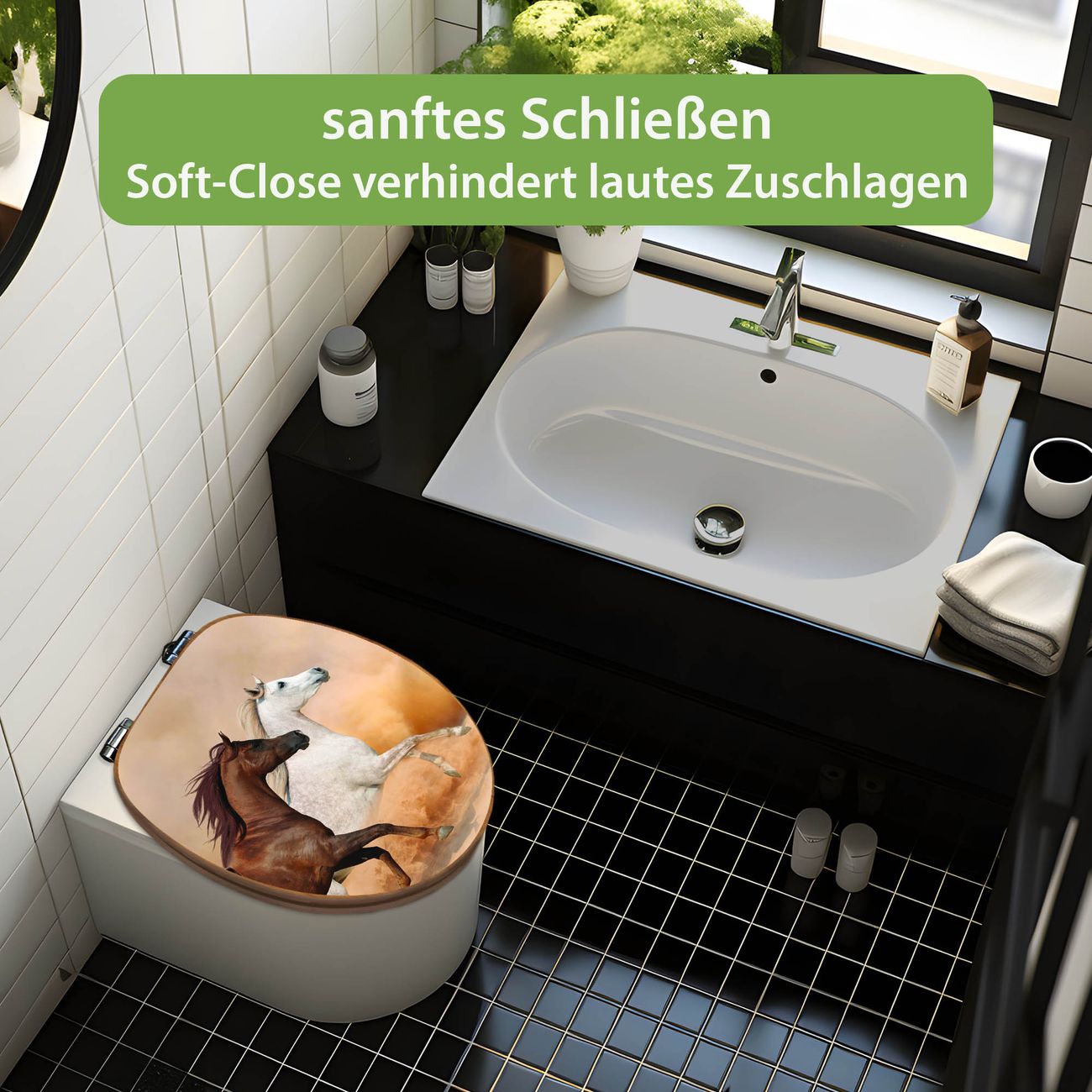 Design WC-Sitz Bambus Absenkautomatik Motiv Wilde Pferde