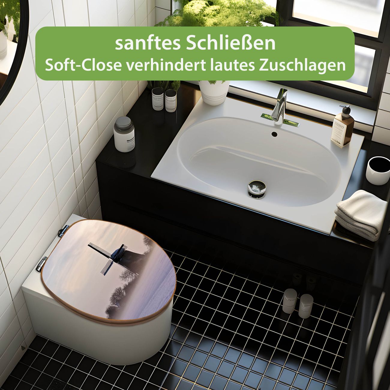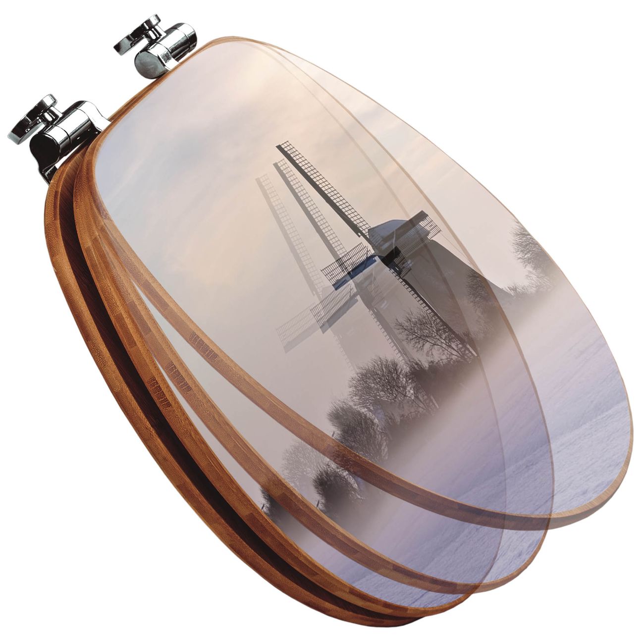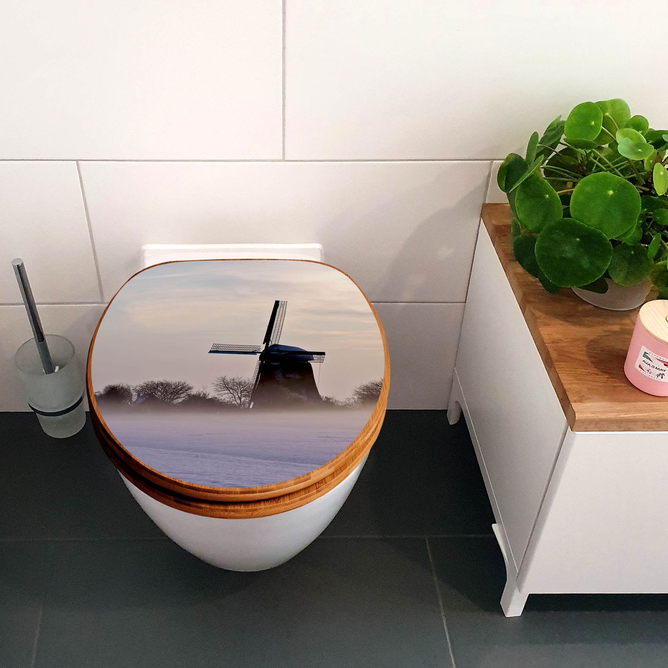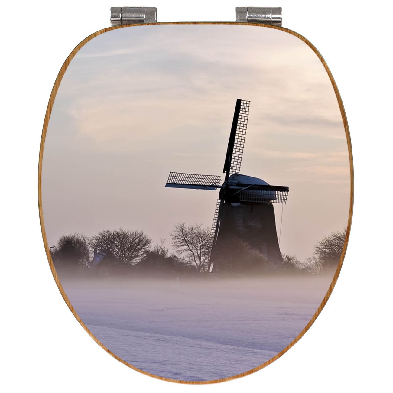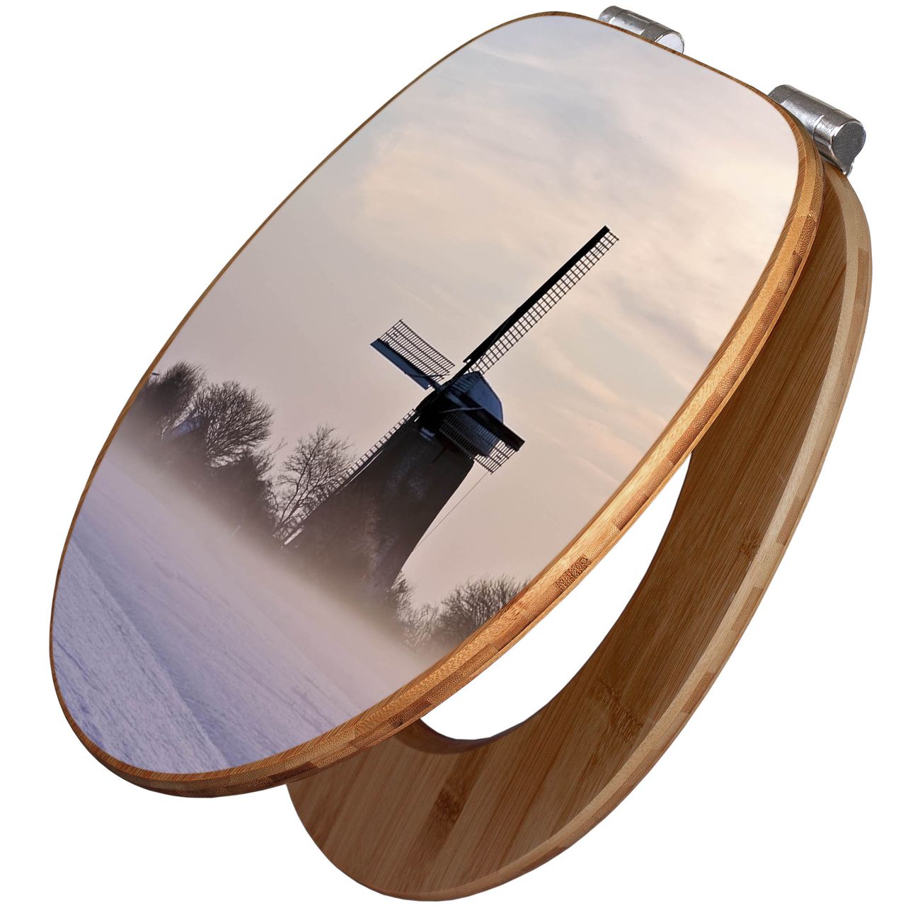 Design WC-Sitz Bambus Absenkautomatik Motiv Windmühle im Winter