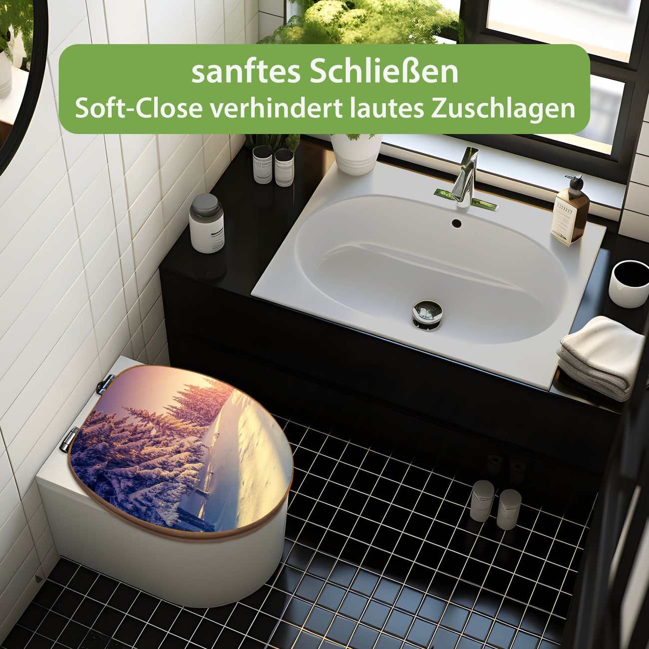 Design WC-Sitz Bambus Absenkautomatik Motiv Winterabend