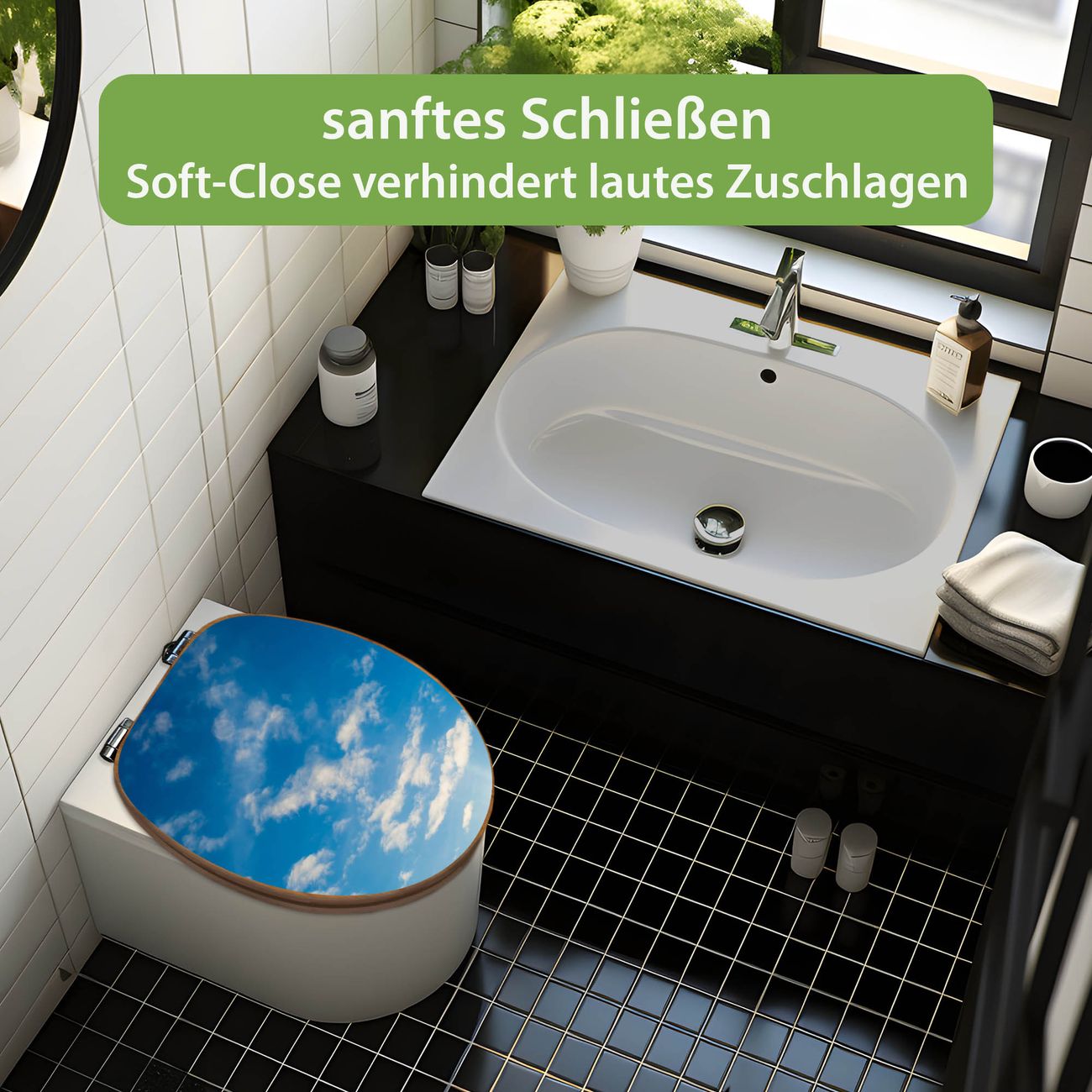 Design WC-Sitz Bambus Absenkautomatik Motiv Wolken 11