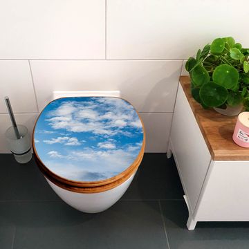 Mit dem banjado Toilettensitz in Bambus verbinden Sie Design und Funktionalität. Sie erhalten den WC-Sitz mit bewährter Holz Qualität und Universal Scharnieren. Das Motiv Motiv Wolken 1 besteht aus einer schutzlaminierten Motivfolie, die durch das Schutzlaminat zusätzlich vor Kratzern schützt. Durch diesen Motivdruck wird der WC-Sitz zu einem Blickfang in Ihrem Bad.