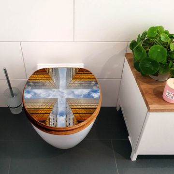 Mit dem banjado Toilettensitz in Bambus verbinden Sie Design und Funktionalität. Sie erhalten den WC-Sitz mit bewährter Holz Qualität und Universal Scharnieren. Das Motiv Motiv Wolkenkratzer 2 besteht aus einer schutzlaminierten Motivfolie, die durch das Schutzlaminat zusätzlich vor Kratzern schützt. Durch diesen Motivdruck wird der WC-Sitz zu einem Blickfang in Ihrem Bad.