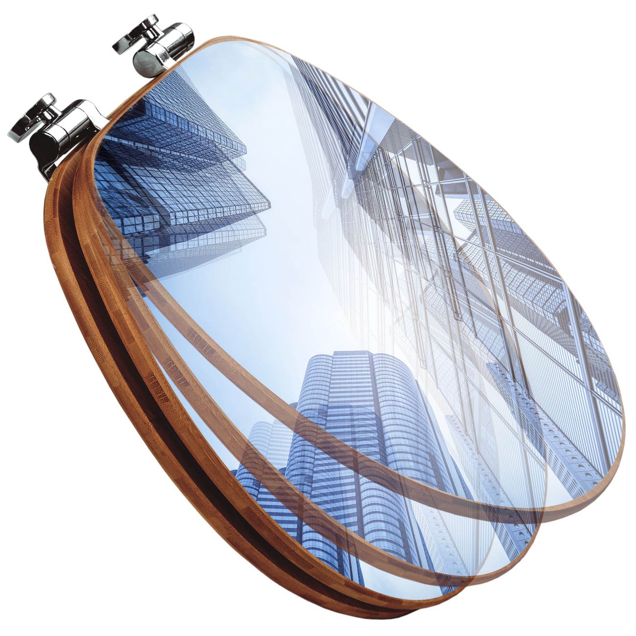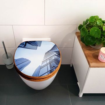 Design WC-Sitz Bambus Absenkautomatik Motiv Wolkenkratzer