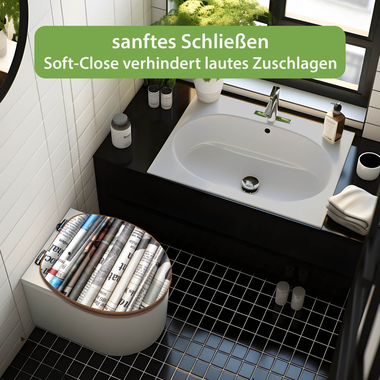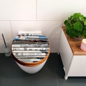 Design WC-Sitz Bambus Absenkautomatik Motiv Zeitungen