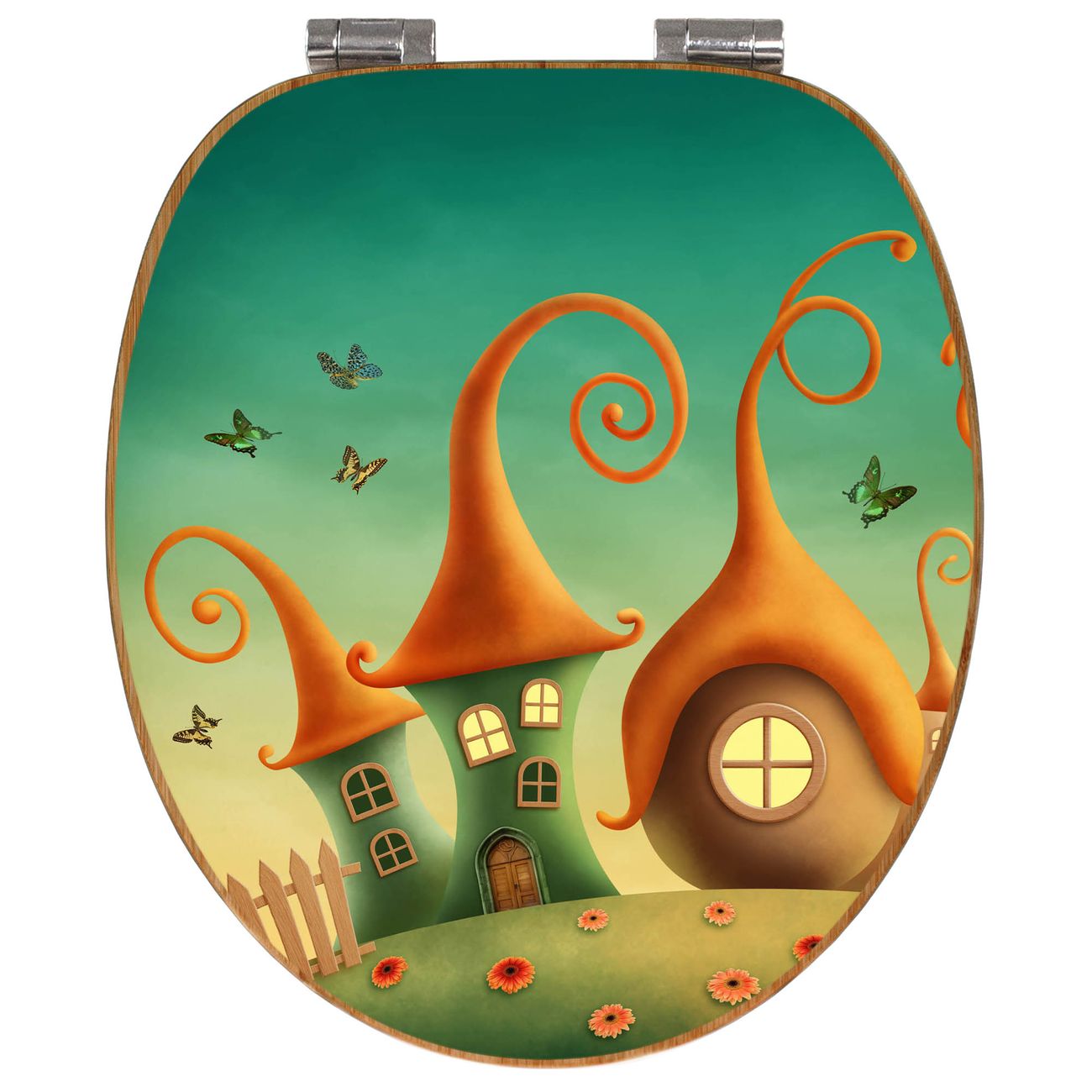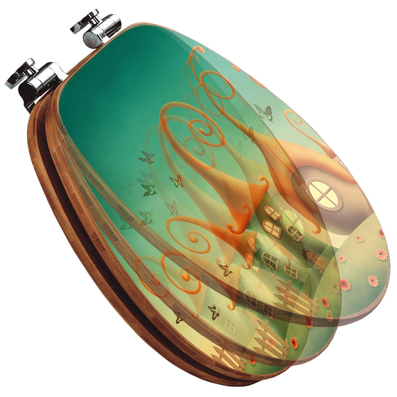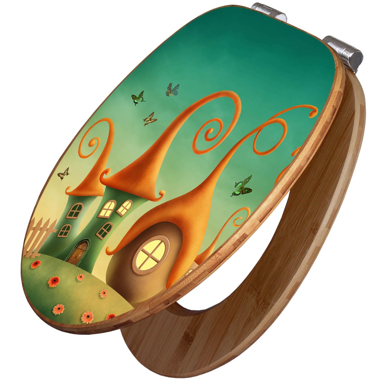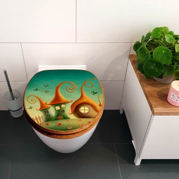 Design WC-Sitz Bambus Absenkautomatik Motiv Zwergenhausen