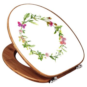 Design WC-Sitz Bambus Holz Motiv Aquarell Blumenring