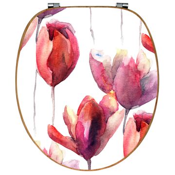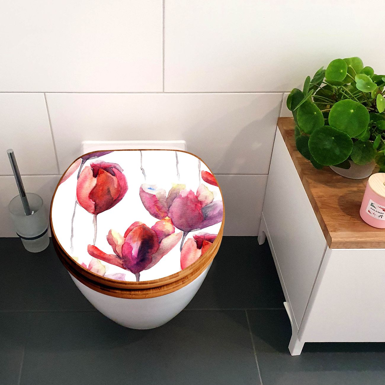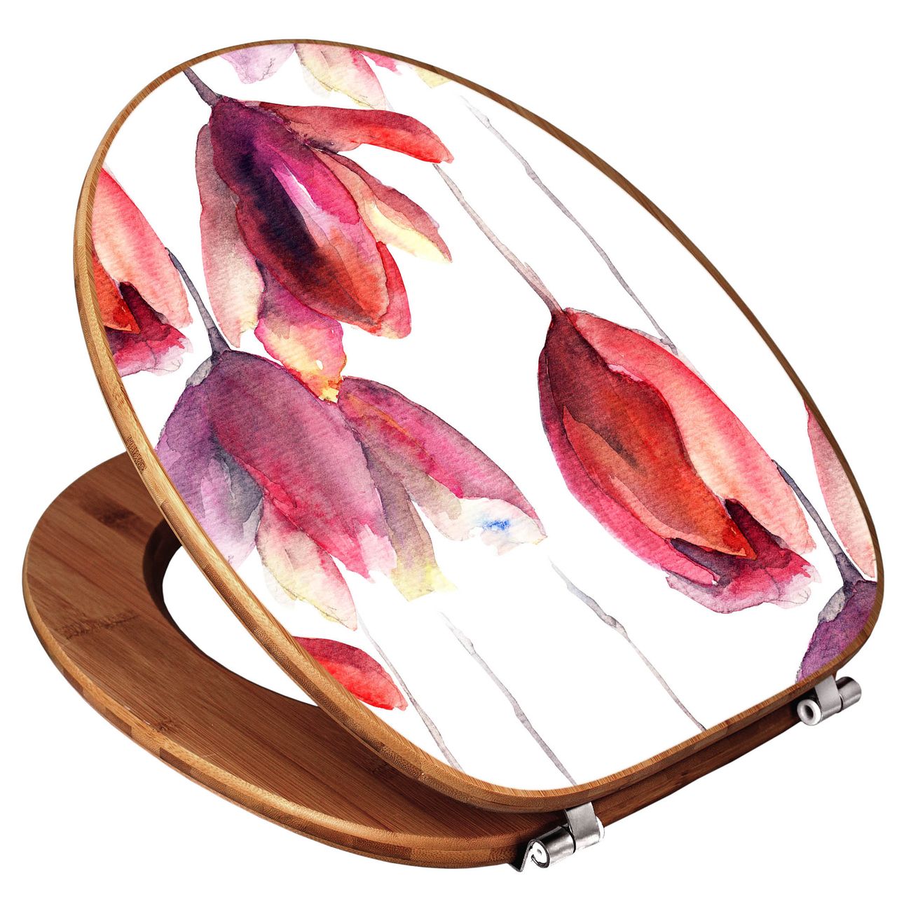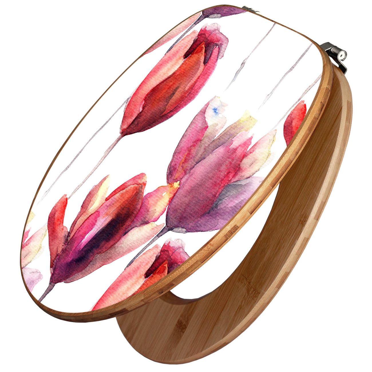 Design WC-Sitz Bambus Holz Motiv Aquarell Tulpen