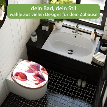 Mit dem banjado Toilettensitz in Bambus verbinden Sie Design und Funktionalität. Sie erhalten den WC-Sitz mit bewährt schwerer Holz Qualität und Universal Scharnieren. Das Motiv Motiv Aquarell Tulpen besteht aus einer schutzlaminierten Motivfolie, die durch das Schutzlaminat zusätzlich vor Kratzern schützt. Durch diesen Motivdruck wird der WC-Sitz zu einem Blickfang in Ihrem Bad.