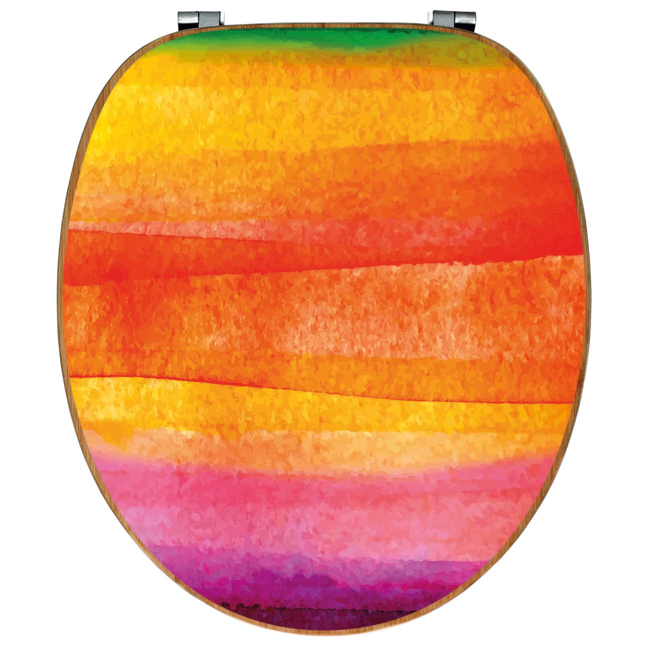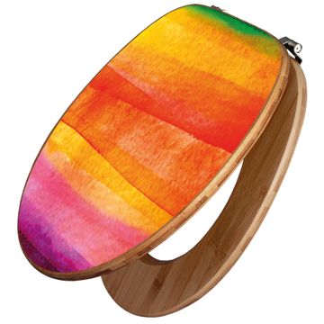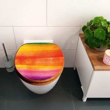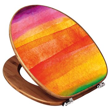 Mit dem banjado Toilettensitz in Bambus verbinden Sie Design und Funktionalität. Sie erhalten den WC-Sitz mit bewährt schwerer Holz Qualität und Universal Scharnieren. Das Motiv Motiv Aquarell besteht aus einer schutzlaminierten Motivfolie, die durch das Schutzlaminat zusätzlich vor Kratzern schützt. Durch diesen Motivdruck wird der WC-Sitz zu einem Blickfang in Ihrem Bad.