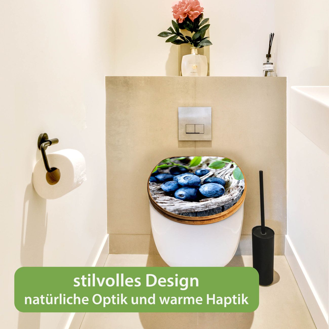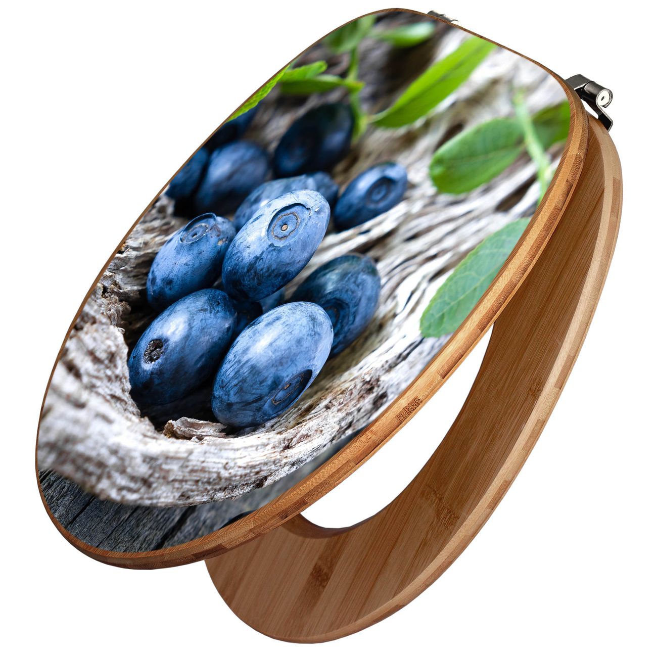 Design WC-Sitz Bambus Holz Motiv Blaubeeren