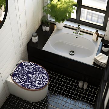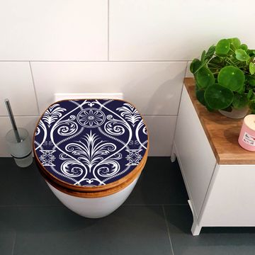 Mit dem banjado Toilettensitz in Bambus verbinden Sie Design und Funktionalität. Sie erhalten den WC-Sitz mit bewährt schwerer Holz Qualität und Universal Scharnieren. Das Motiv Motiv Blaue Tapete besteht aus einer schutzlaminierten Motivfolie, die durch das Schutzlaminat zusätzlich vor Kratzern schützt. Durch diesen Motivdruck wird der WC-Sitz zu einem Blickfang in Ihrem Bad.