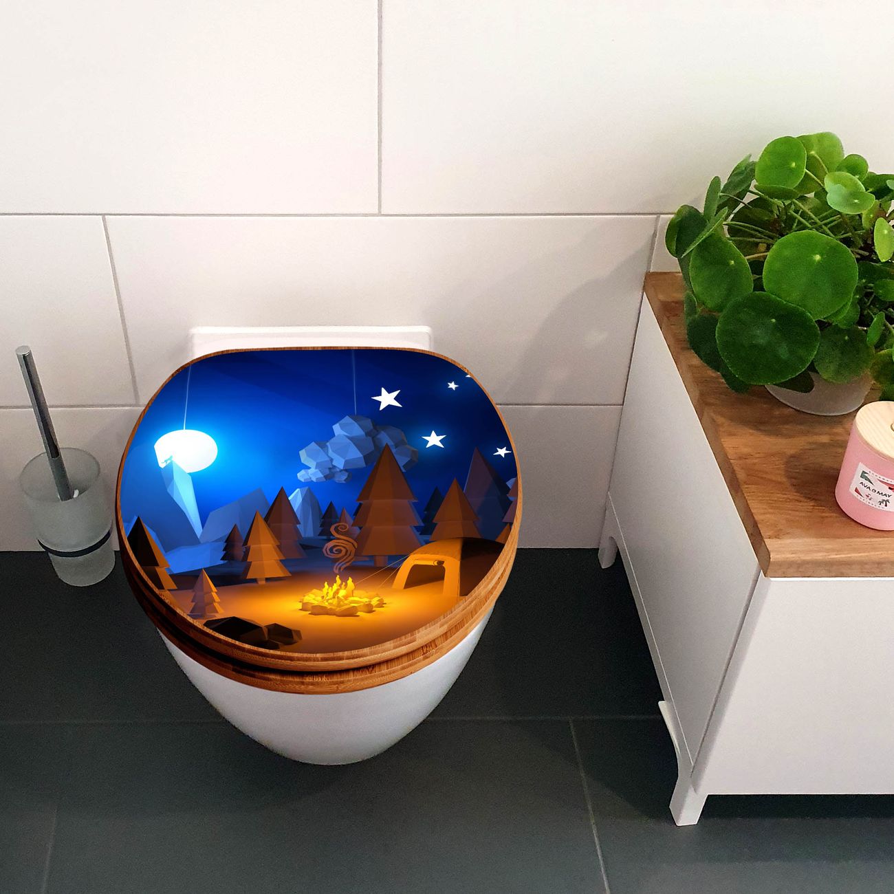 Design WC-Sitz Bambus Holz Motiv Camping 2