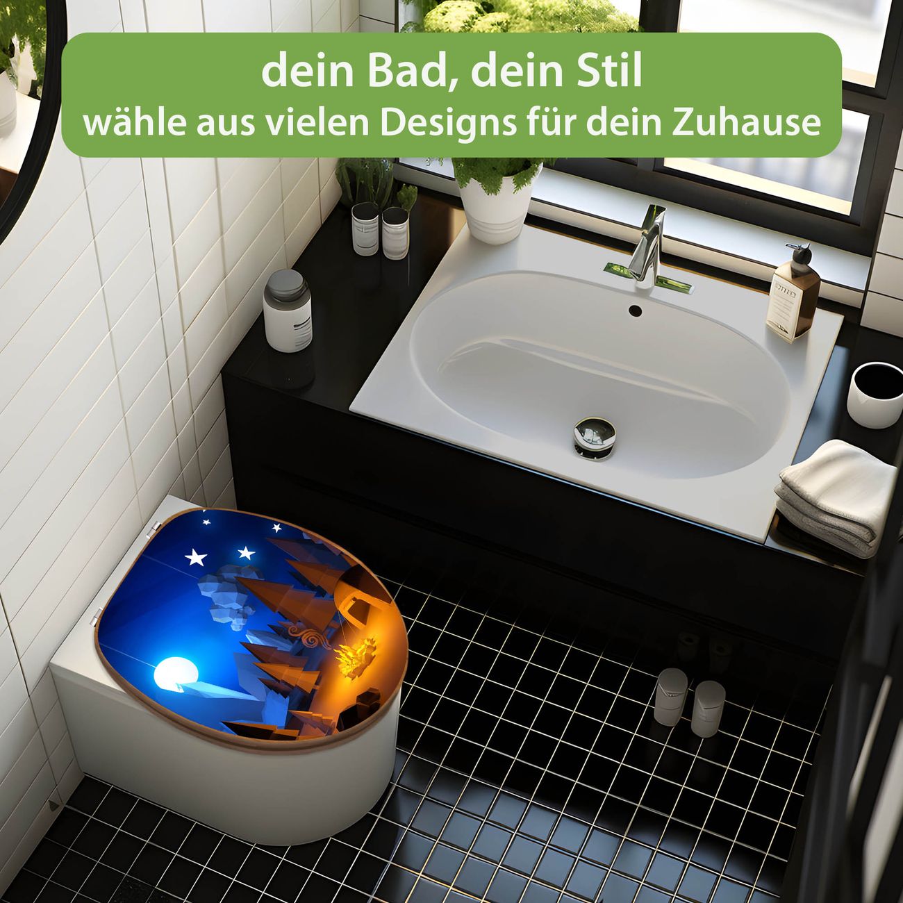 Mit dem banjado Toilettensitz in Bambus verbinden Sie Design und Funktionalität. Sie erhalten den WC-Sitz mit bewährt schwerer Holz Qualität und Universal Scharnieren. Das Motiv Motiv Camping 2 besteht aus einer schutzlaminierten Motivfolie, die durch das Schutzlaminat zusätzlich vor Kratzern schützt. Durch diesen Motivdruck wird der WC-Sitz zu einem Blickfang in Ihrem Bad.
