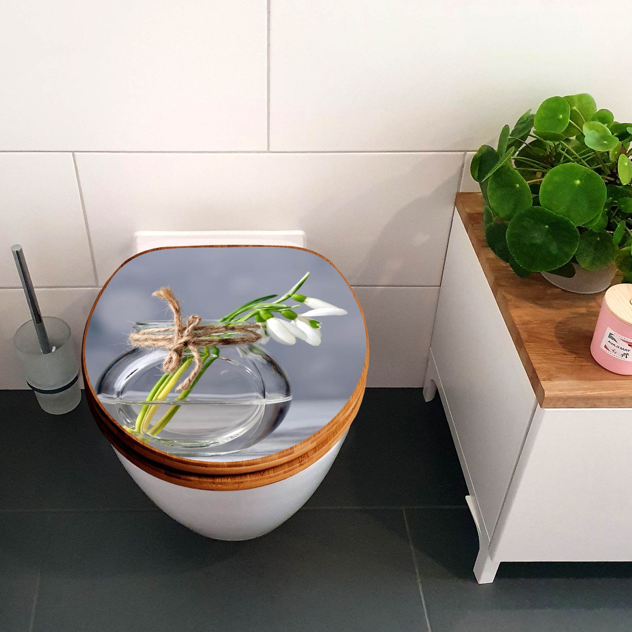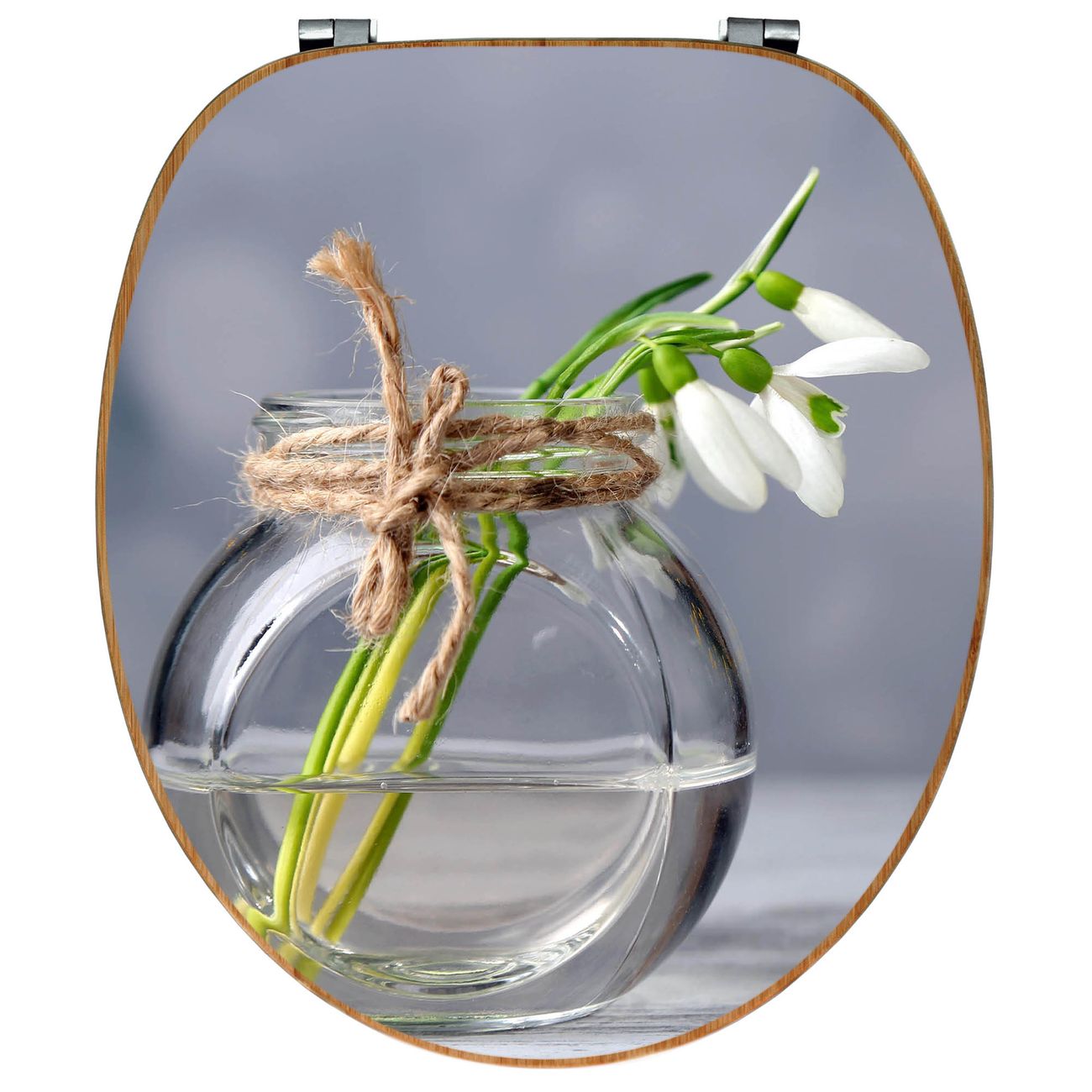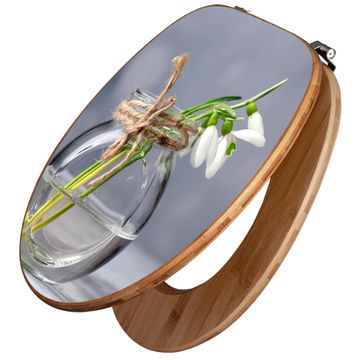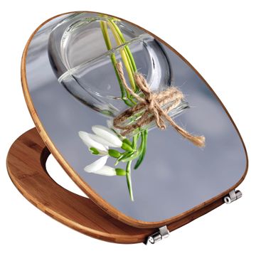Design WC-Sitz Bambus Holz Motiv Gänseblümchen im Glas