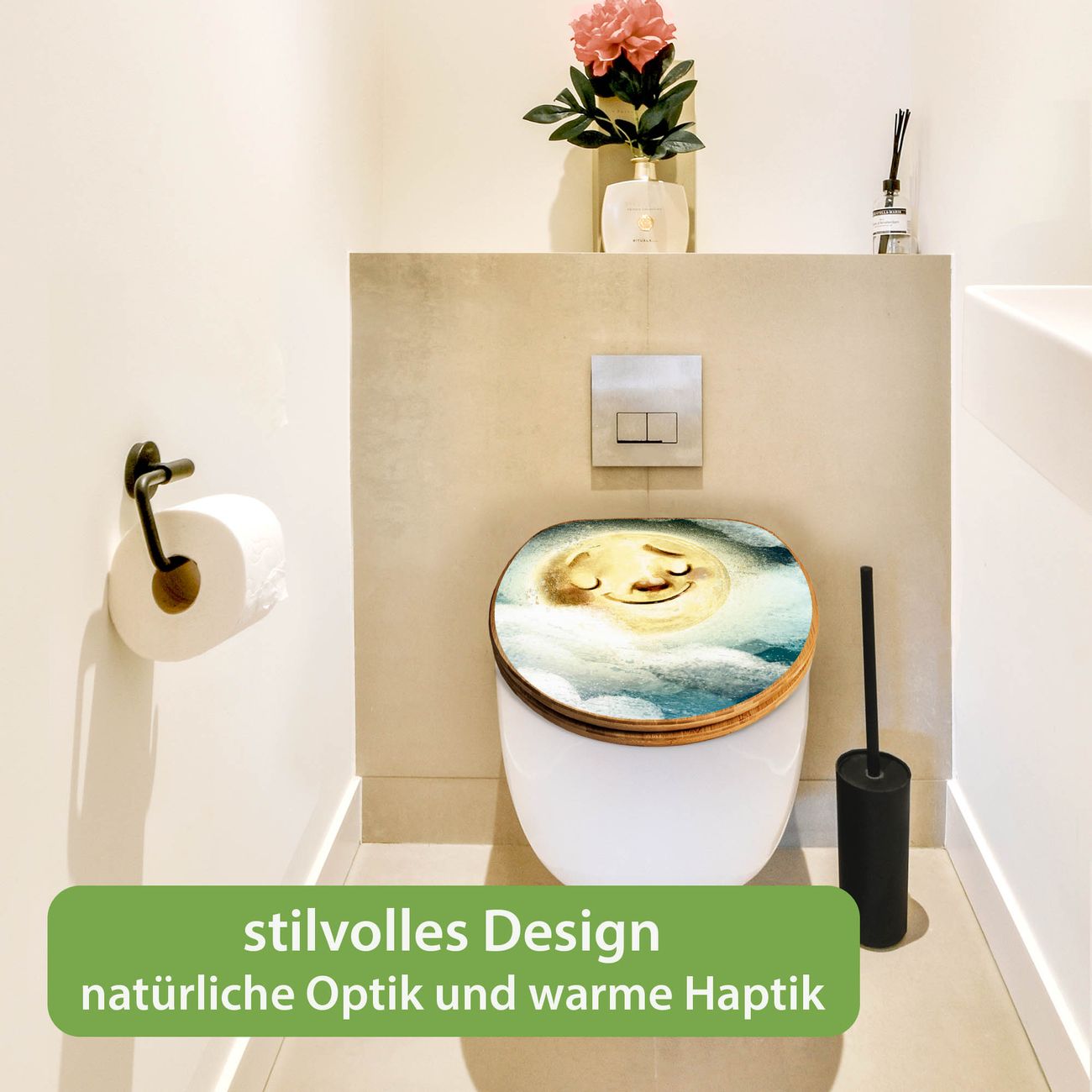 Design WC-Sitz Bambus Holz Motiv Glücksmond