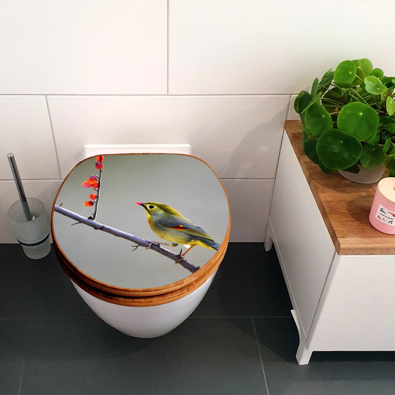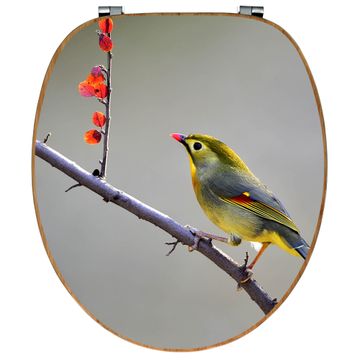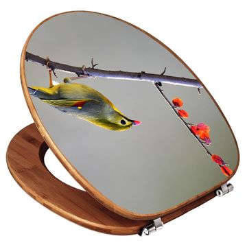 Design WC-Sitz Bambus Holz Motiv Herbst Vogel