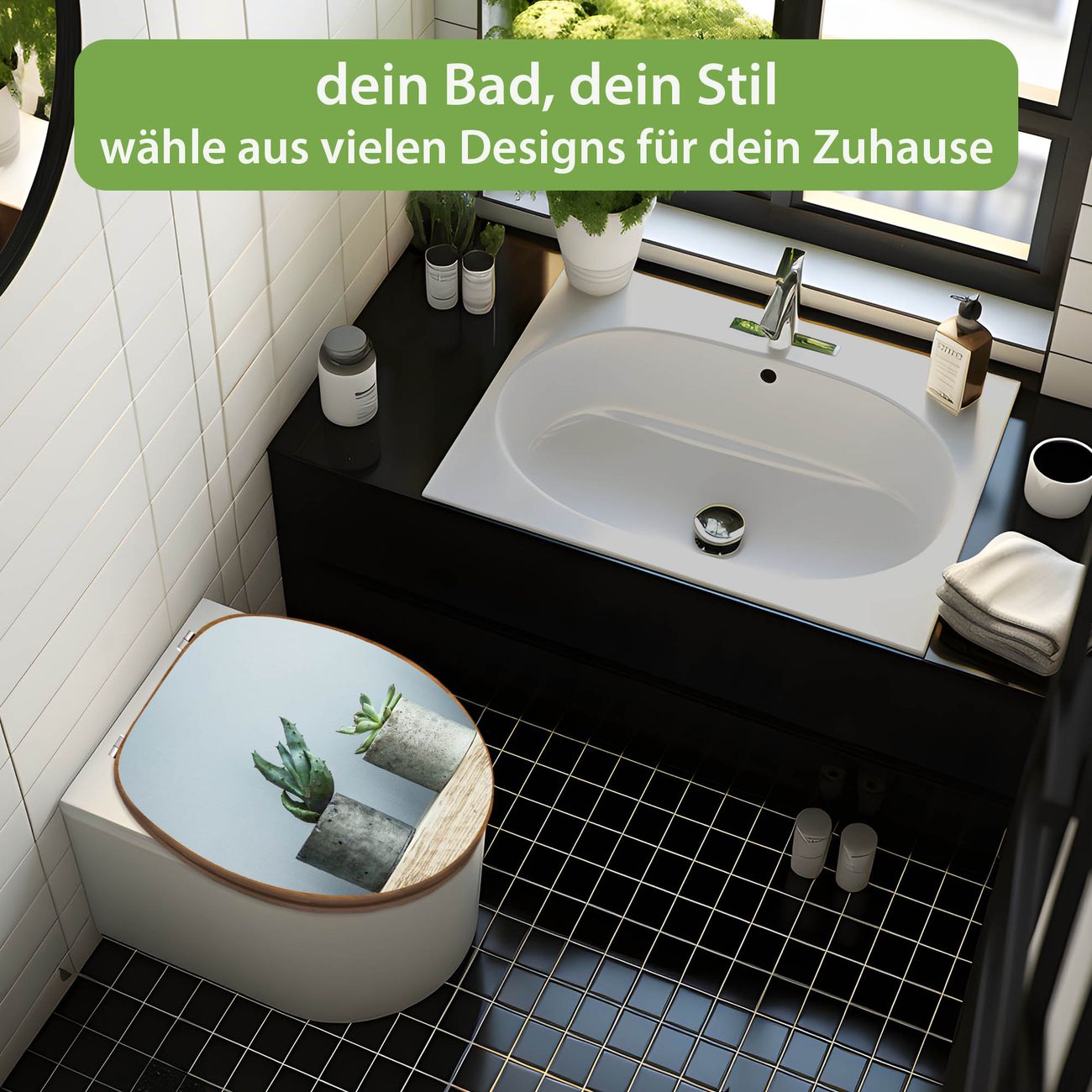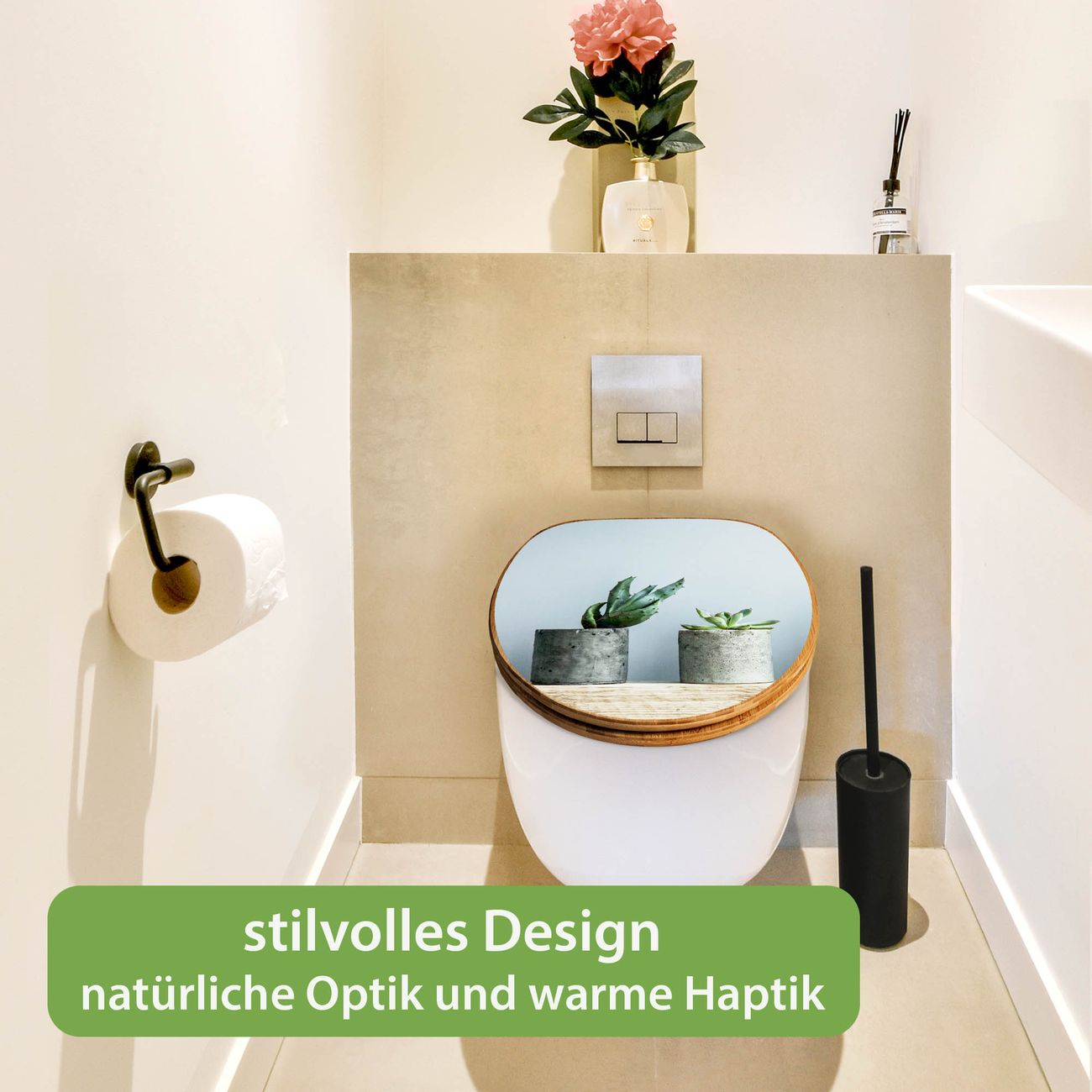 Design WC-Sitz Bambus Holz Motiv Kakteen in Beton