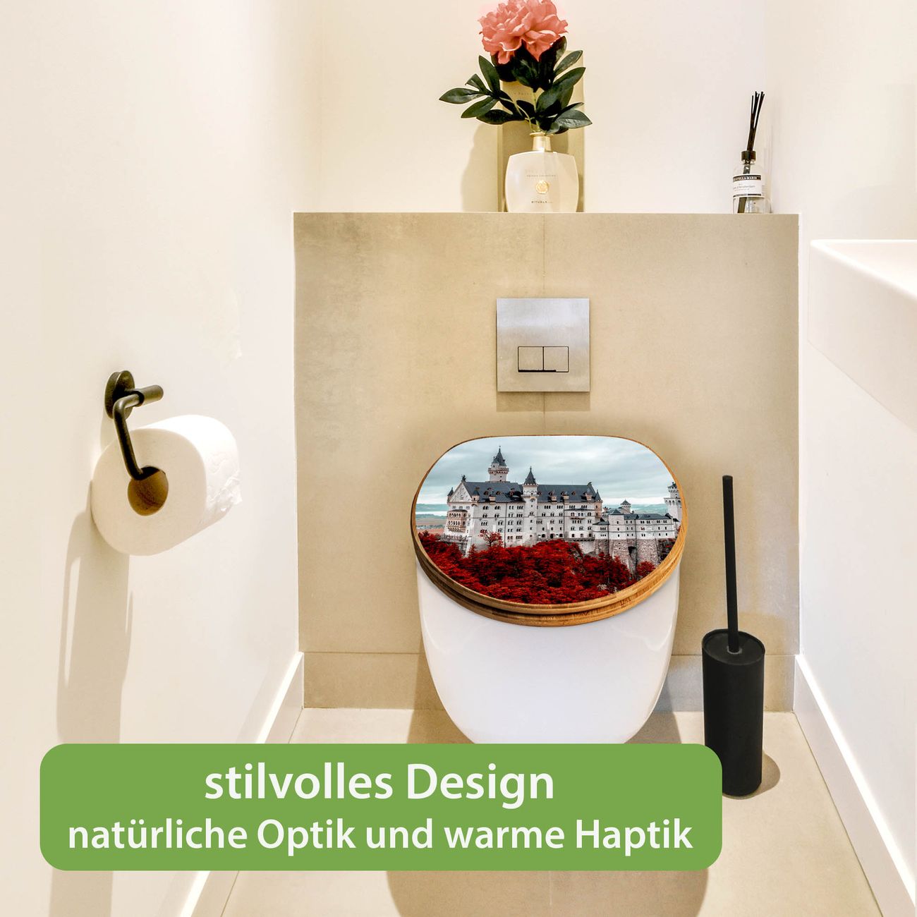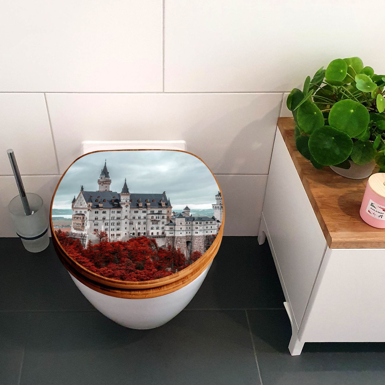 Design WC-Sitz Bambus Holz Motiv Neuschwanstein
