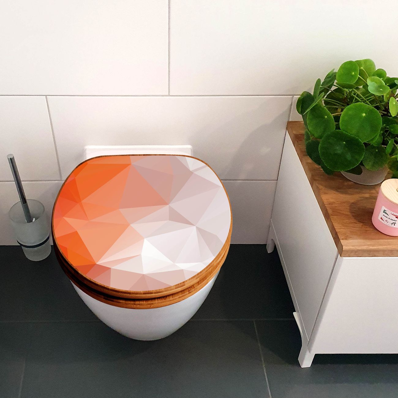 Design WC-Sitz Bambus Holz Motiv Orange Polygon