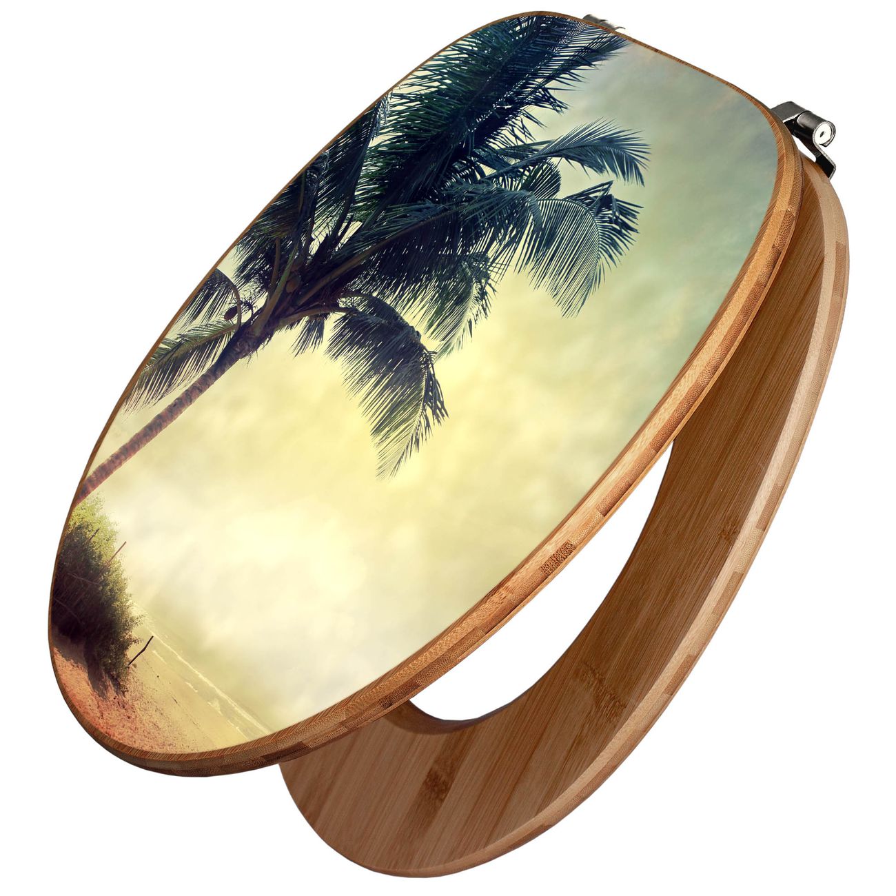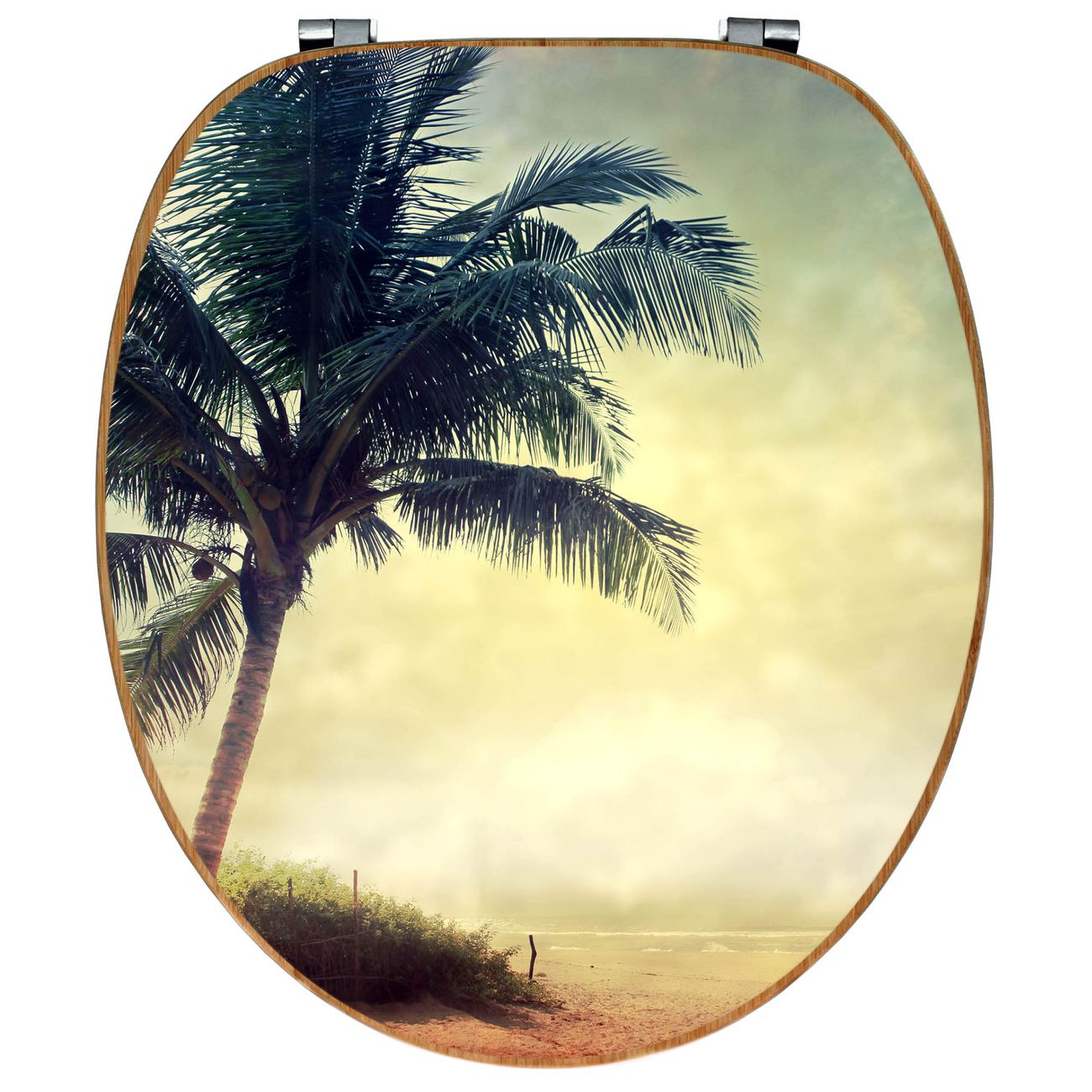 Design WC-Sitz Bambus Holz Motiv Palme am Strand