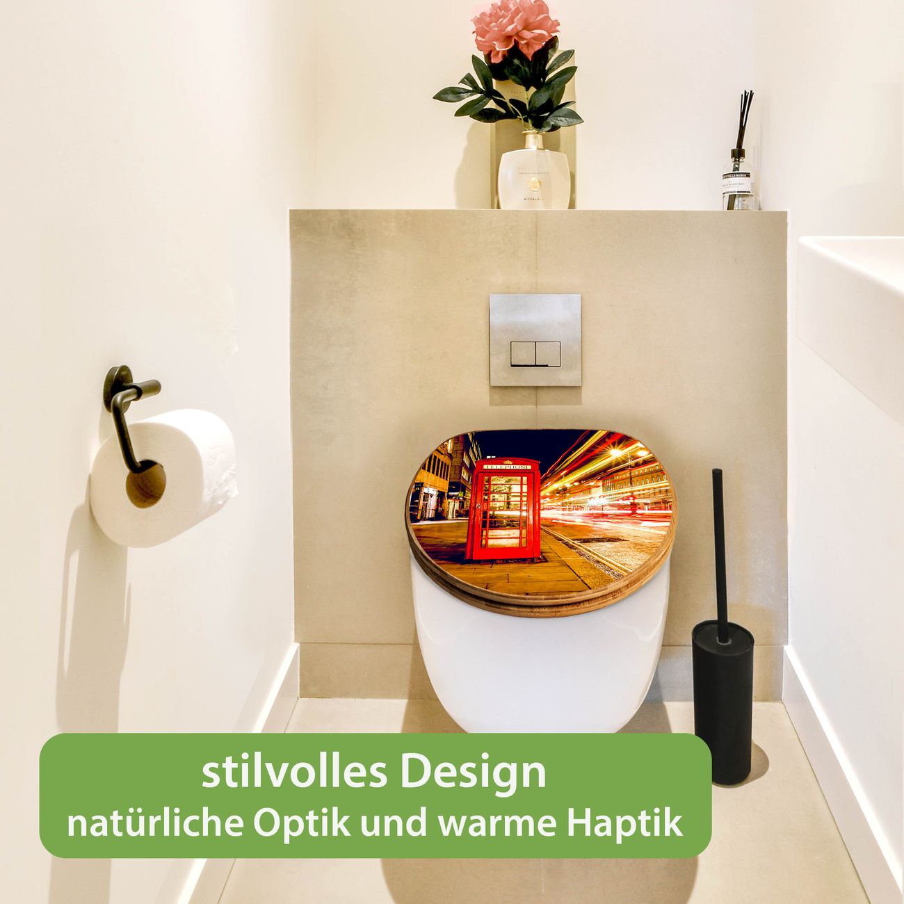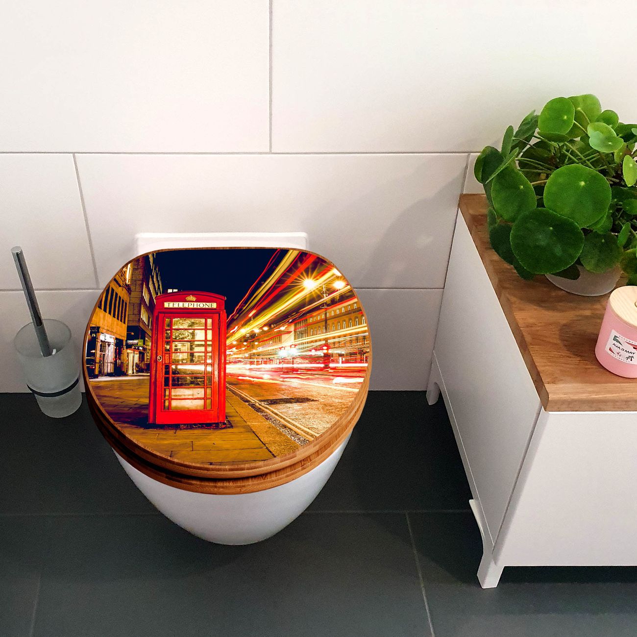 Design WC-Sitz Bambus Holz Motiv Red Telephone Trafic