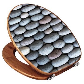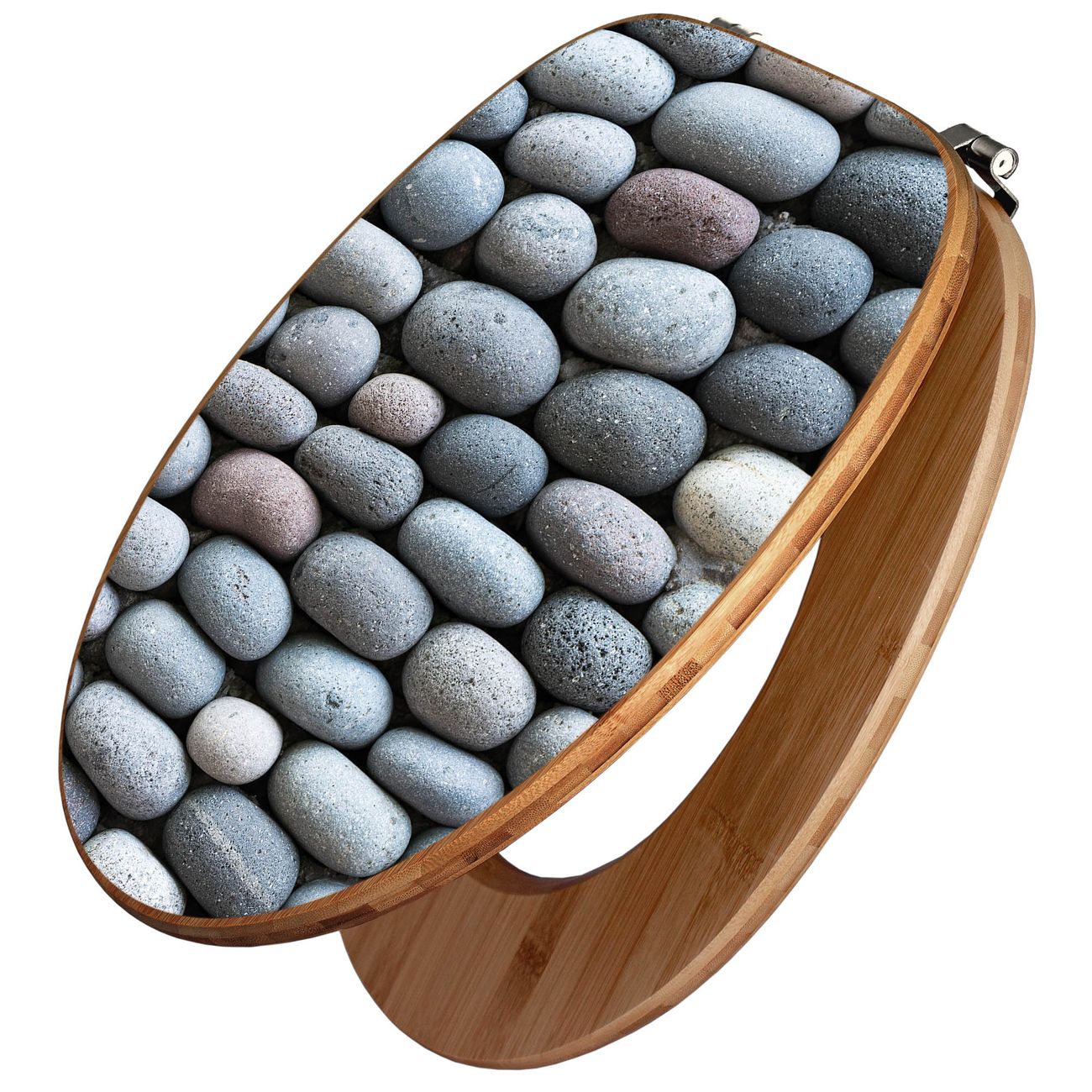 Design WC-Sitz Bambus Holz Motiv Runde Steine