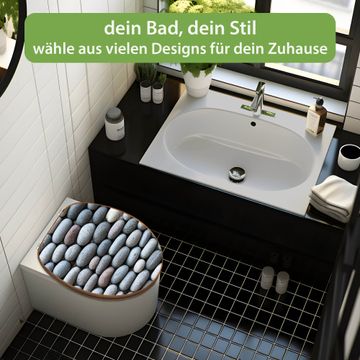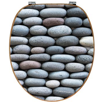Mit dem banjado Toilettensitz in Bambus verbinden Sie Design und Funktionalität. Sie erhalten den WC-Sitz mit bewährt schwerer Holz Qualität und Universal Scharnieren. Das Motiv Motiv Runde Steine besteht aus einer schutzlaminierten Motivfolie, die durch das Schutzlaminat zusätzlich vor Kratzern schützt. Durch diesen Motivdruck wird der WC-Sitz zu einem Blickfang in Ihrem Bad.