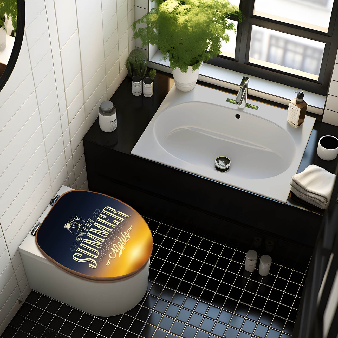 Mit dem banjado Toilettensitz in Bambus verbinden Sie Design und Funktionalität. Sie erhalten den WC-Sitz mit bewährt schwerer Holz Qualität und Universal Scharnieren. Das Motiv Motiv Sommer Night besteht aus einer schutzlaminierten Motivfolie, die durch das Schutzlaminat zusätzlich vor Kratzern schützt. Durch diesen Motivdruck wird der WC-Sitz zu einem Blickfang in Ihrem Bad.