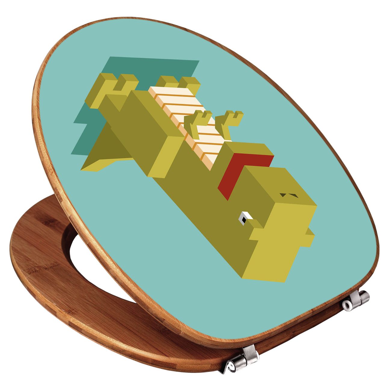 Mit dem banjado Toilettensitz in Bambus verbinden Sie Design und Funktionalität. Sie erhalten den WC-Sitz mit bewährt schwerer Holz Qualität und Universal Scharnieren. Das Motiv Motiv T-Rex Block besteht aus einer schutzlaminierten Motivfolie, die durch das Schutzlaminat zusätzlich vor Kratzern schützt. Durch diesen Motivdruck wird der WC-Sitz zu einem Blickfang in Ihrem Bad.