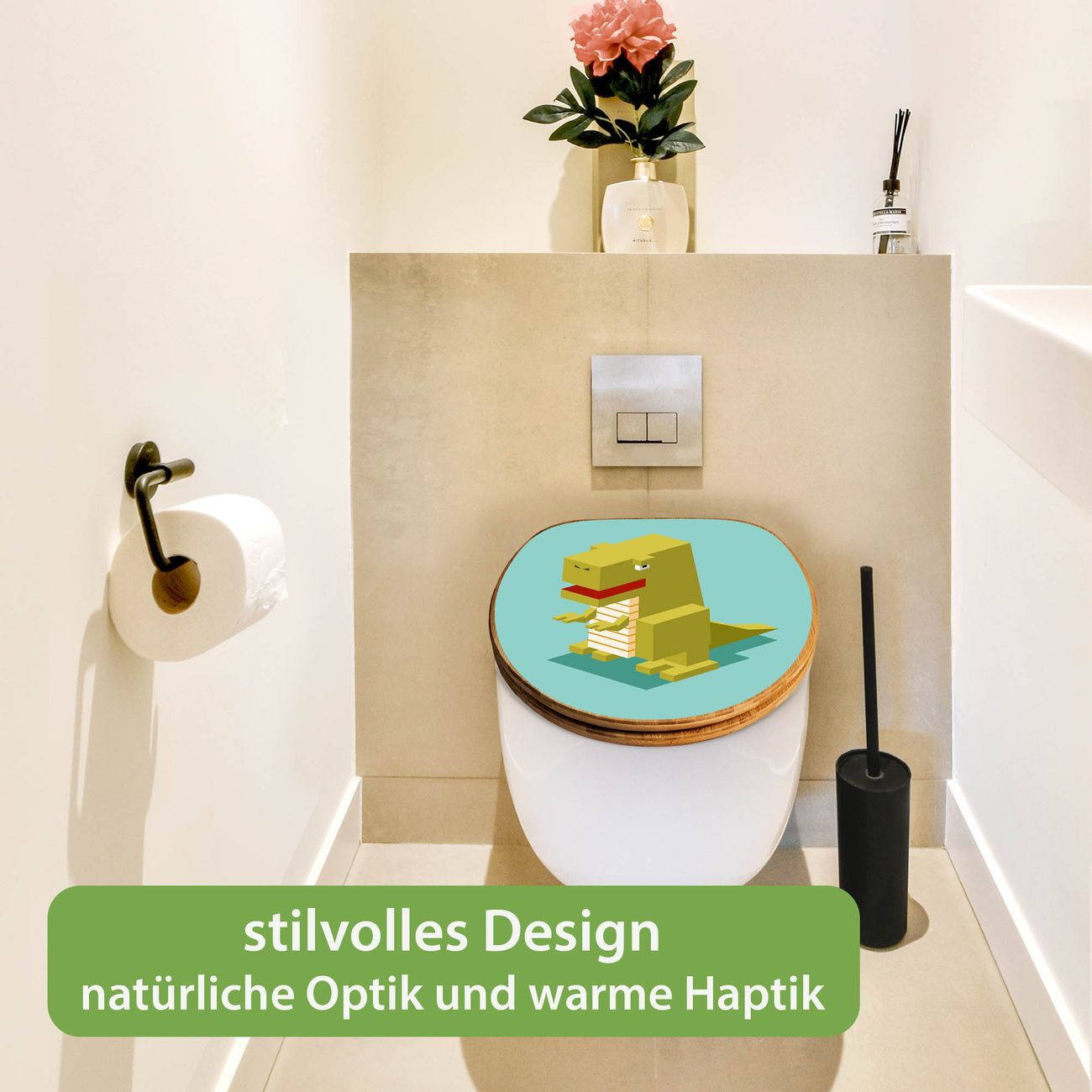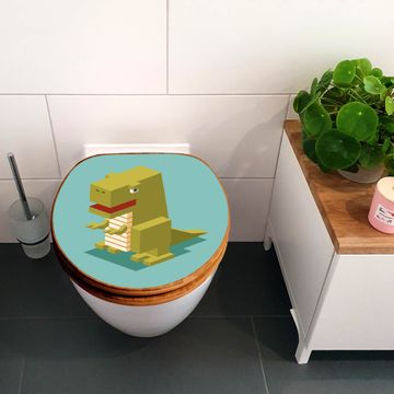 Design WC-Sitz Bambus Holz Motiv T-Rex Block