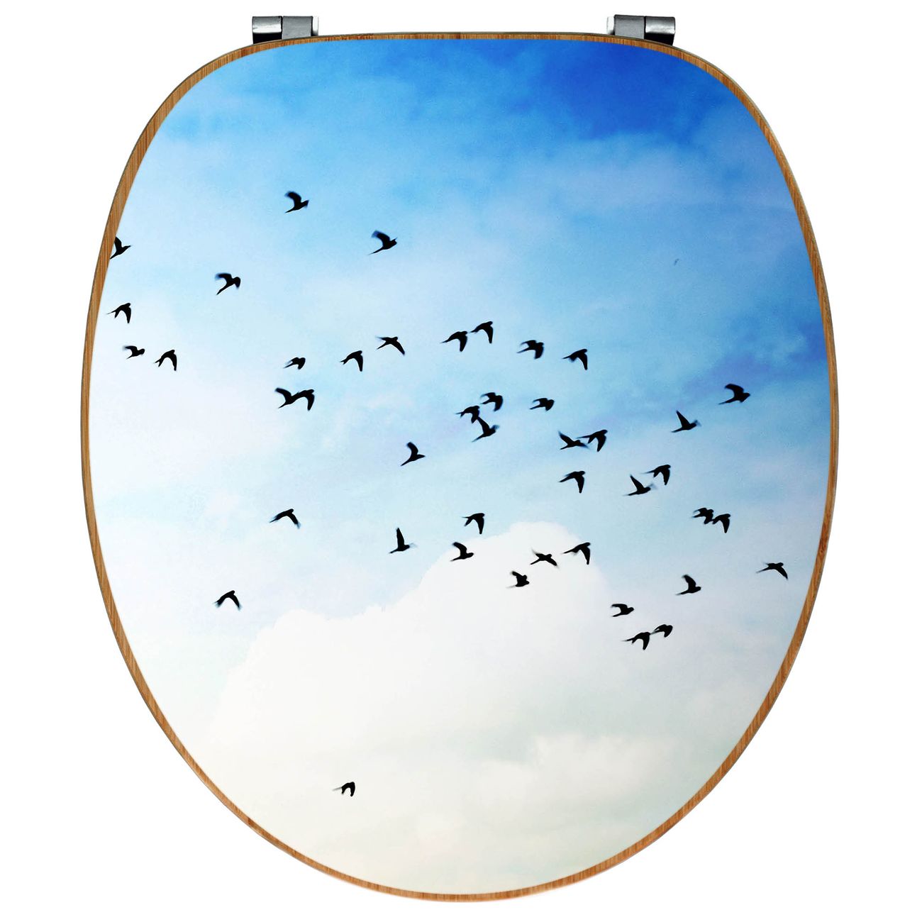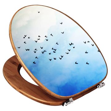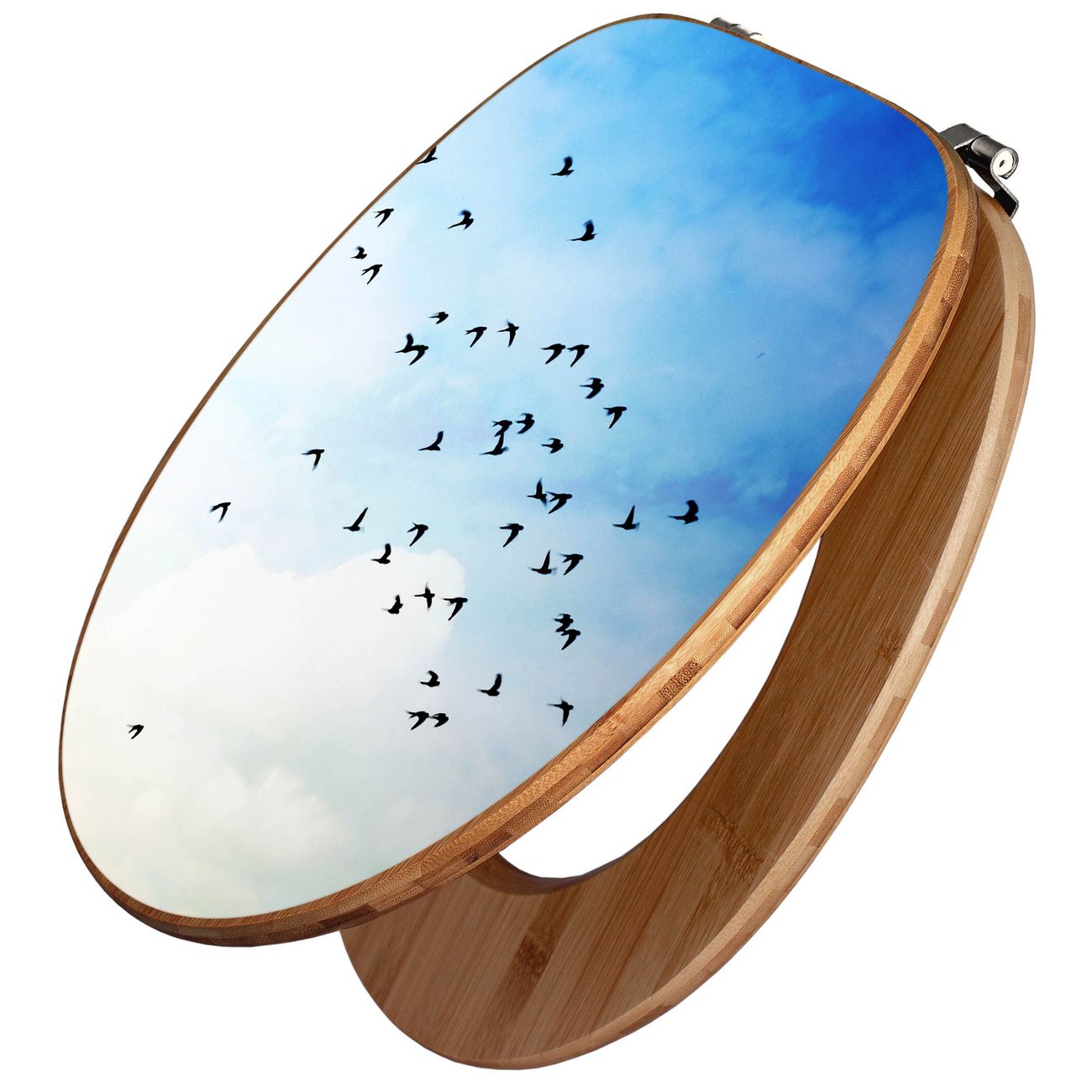 Design WC-Sitz Bambus Holz Motiv Vögel am Himmel 2