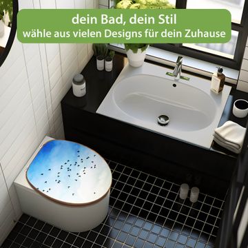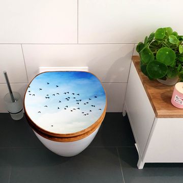 Mit dem banjado Toilettensitz in Bambus verbinden Sie Design und Funktionalität. Sie erhalten den WC-Sitz mit bewährt schwerer Holz Qualität und Universal Scharnieren. Das Motiv Motiv Vögel am Himmel 2 besteht aus einer schutzlaminierten Motivfolie, die durch das Schutzlaminat zusätzlich vor Kratzern schützt. Durch diesen Motivdruck wird der WC-Sitz zu einem Blickfang in Ihrem Bad.