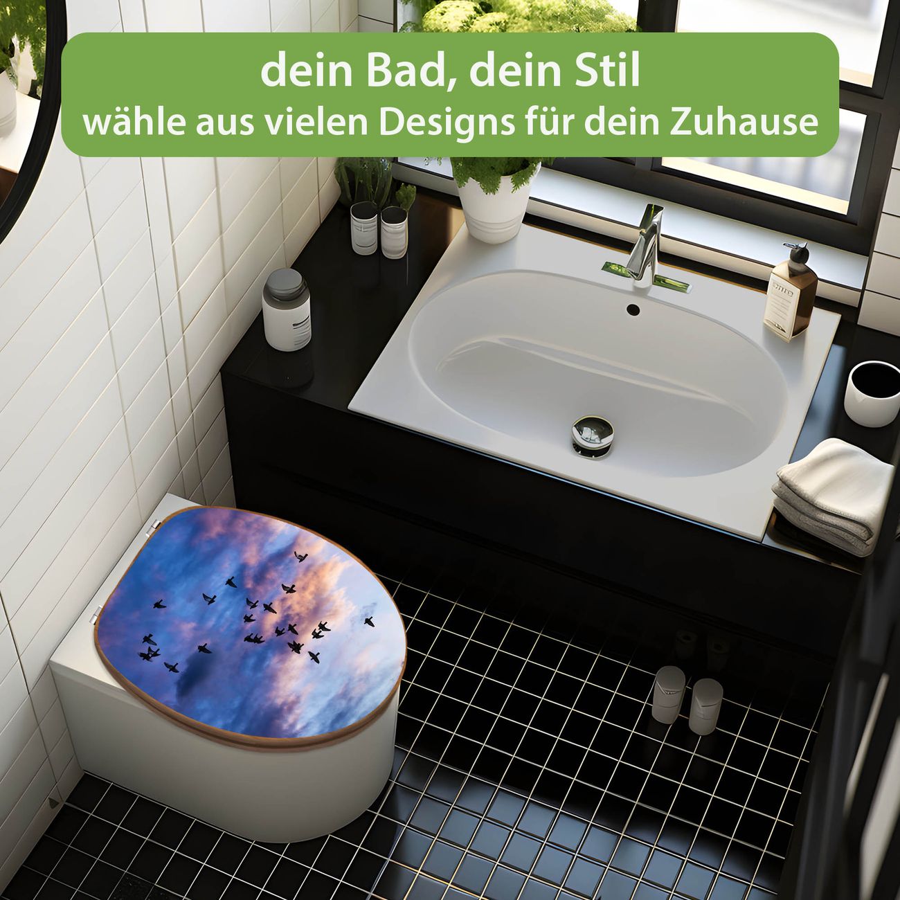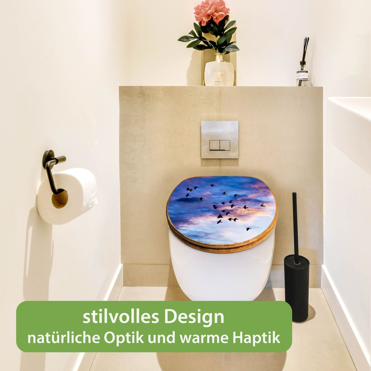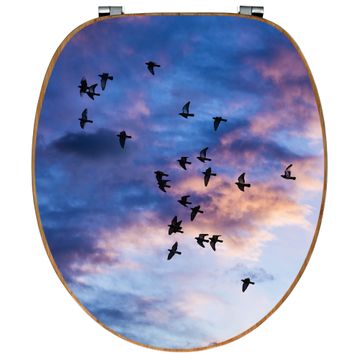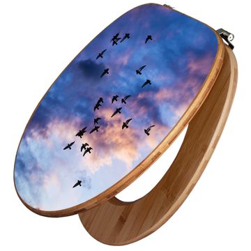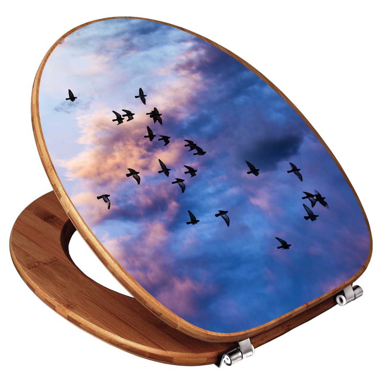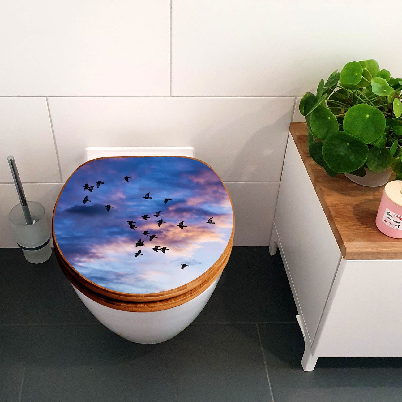 Design WC-Sitz Bambus Holz Motiv Vögel am Himmel 3
